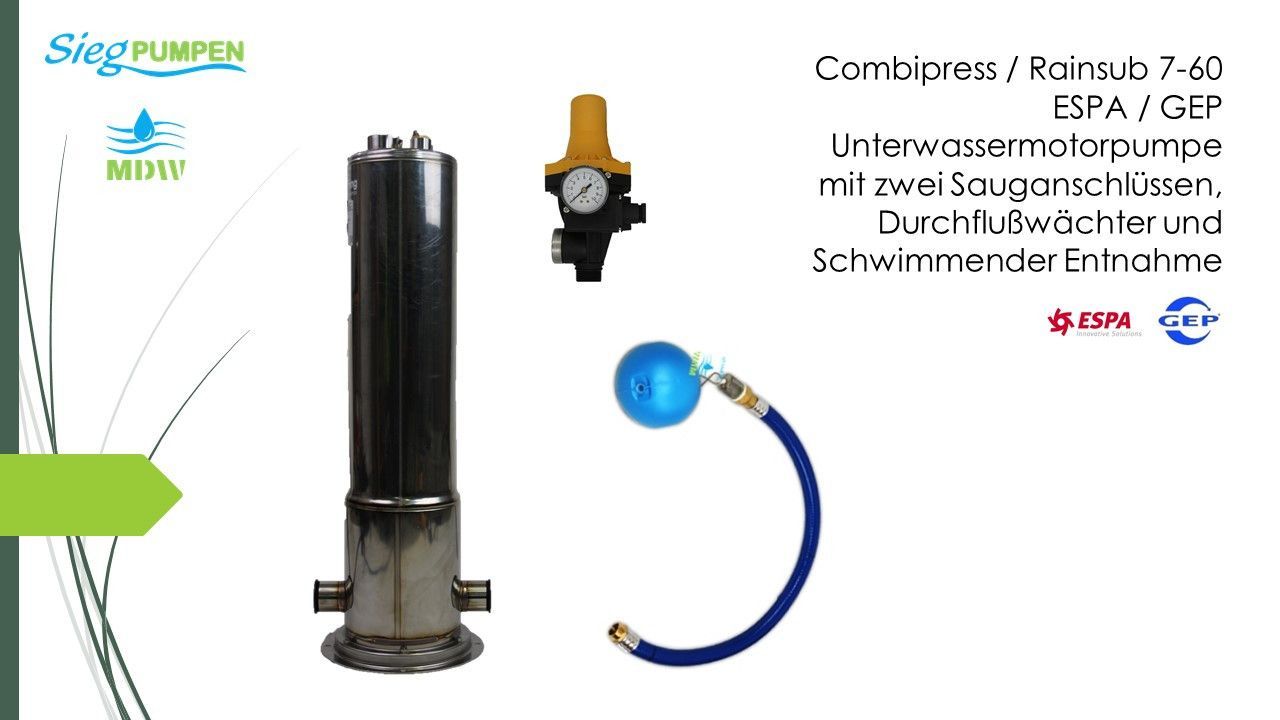 ESPA Combipress / Rainsub 07-6 Tauchmotorpumpe m. Durchflußwächter & Schwimmender Entnahme