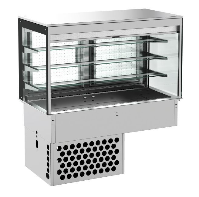 Combisteel Einbau-Kühlvitrine mit eckigem Glasaufbau und Rollo GN31