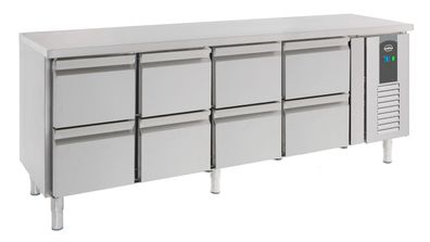 • Kühltisch mit 8 Schubladen mit Aufkantung, Umluft, 223x70