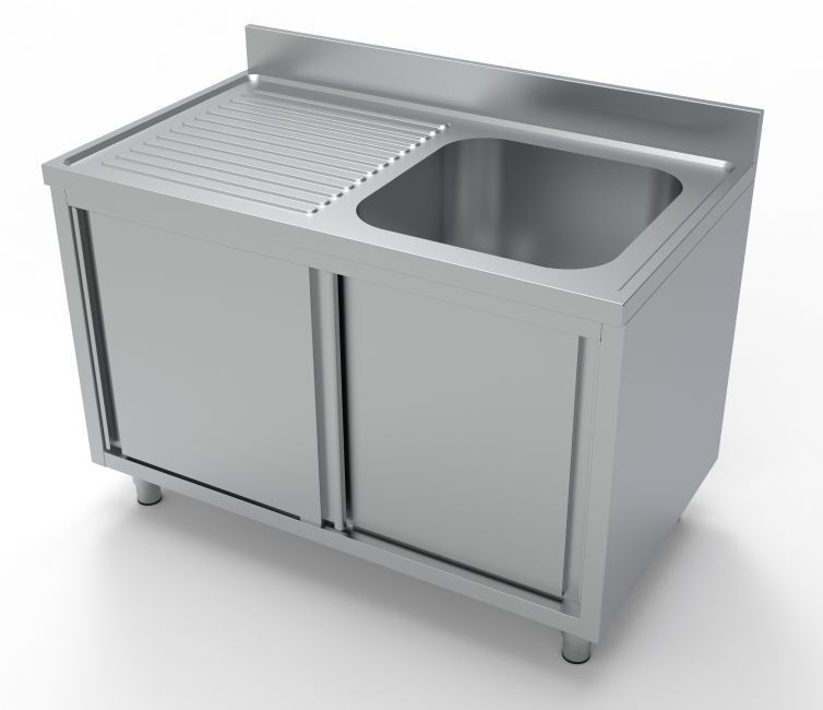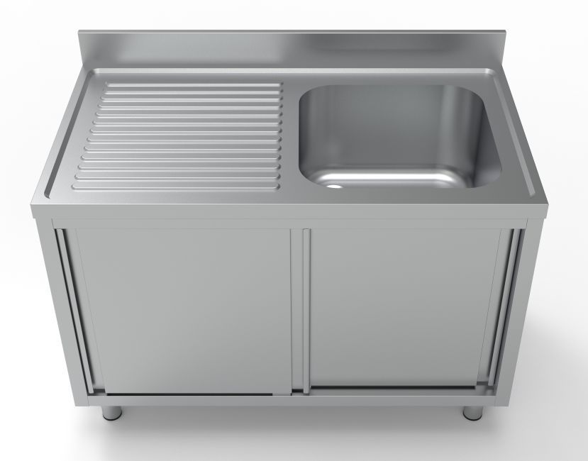 Combisteel Spülschrank 2 Schiebetüren 1 Becken rechts Edelstahl 1200x700x850mm