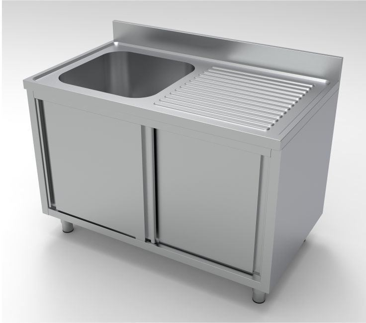 Combisteel Spülschrank mit 2 Türen und 1 Becken links aus Edelstahl 1200x700x850mm
