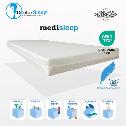 Günstige Matratzen bei Ihrem Matratzenspezialist Doctor Sleep® Medisleep H2 120x210x12cm mit Bezug Coolmax ® Seit mehr als 60 Jahren fertigen und verkaufen wir erfolgreich Matratzen: - Matratzen aus hochwertigem Comfort- und Kaltschaum. - Matratzen mit guten, körperunterstützenden Eigenschaften, die