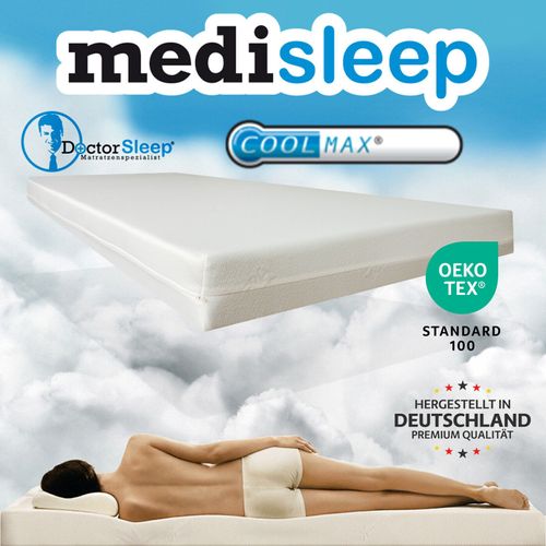 Günstige Matratzen bei Ihrem Matratzenspezialist Doctor Sleep® Medisleep H1 90x210x12cm mit Bezug Coolmax ® Seit mehr als 60 Jahren fertigen und verkaufen wir erfolgreich Matratzen: - Matratzen aus hochwertigem Comfort- und Kaltschaum. - Matratzen mit guten, körperunterstützenden Eigenschaften, die