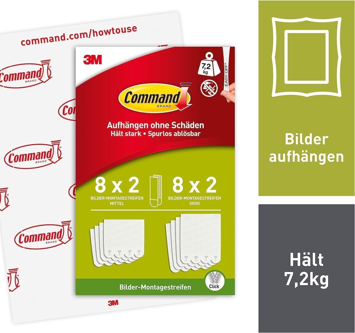 3M Command Bildmontagestreifen – Montage ohne Bohren, preiswertes Set 8x2 L und 8x2 M, w