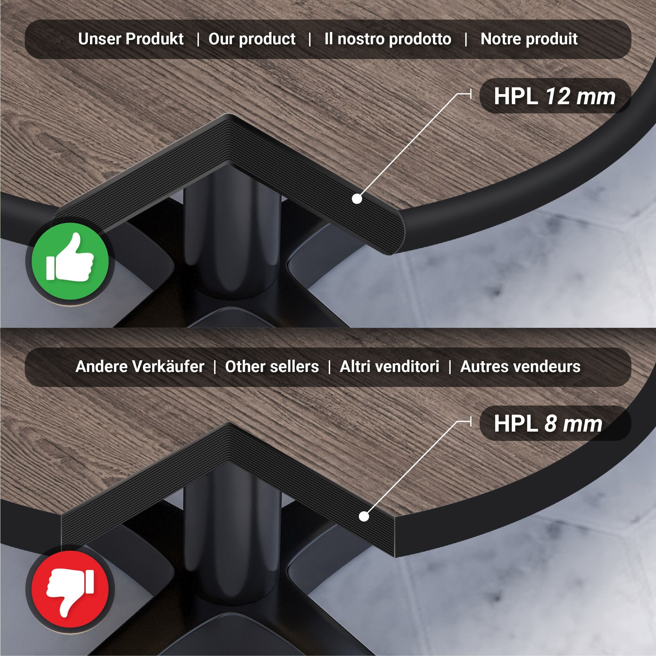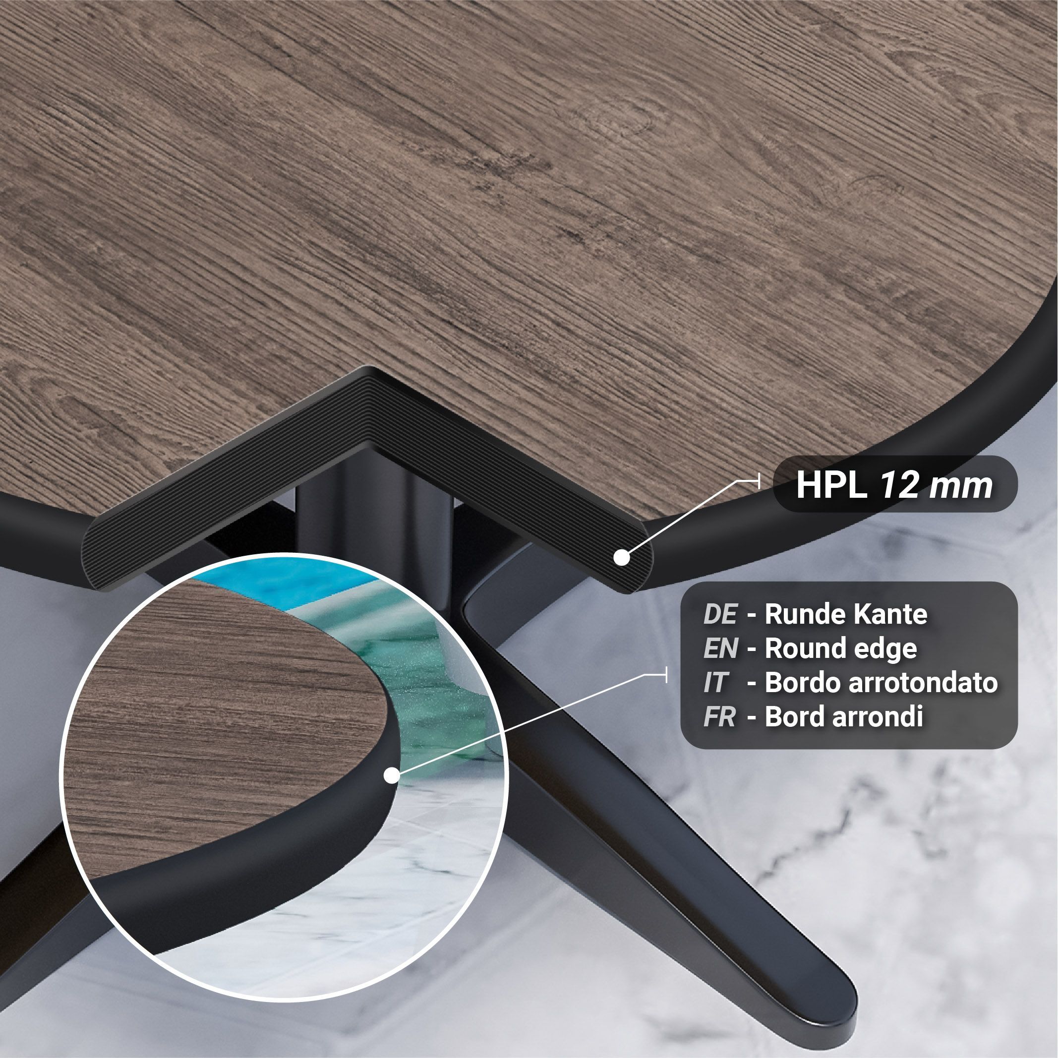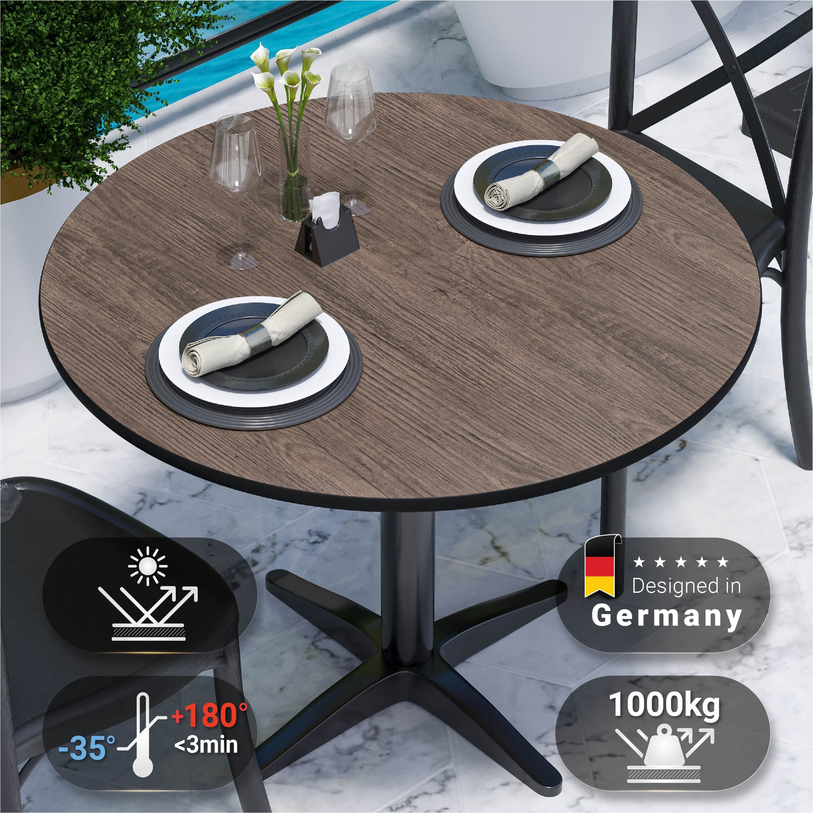 Compact | Gastro HPL Tischplatte | Ø 60 cm | Light Wenge | Rund | Gastro HPL Tischpl