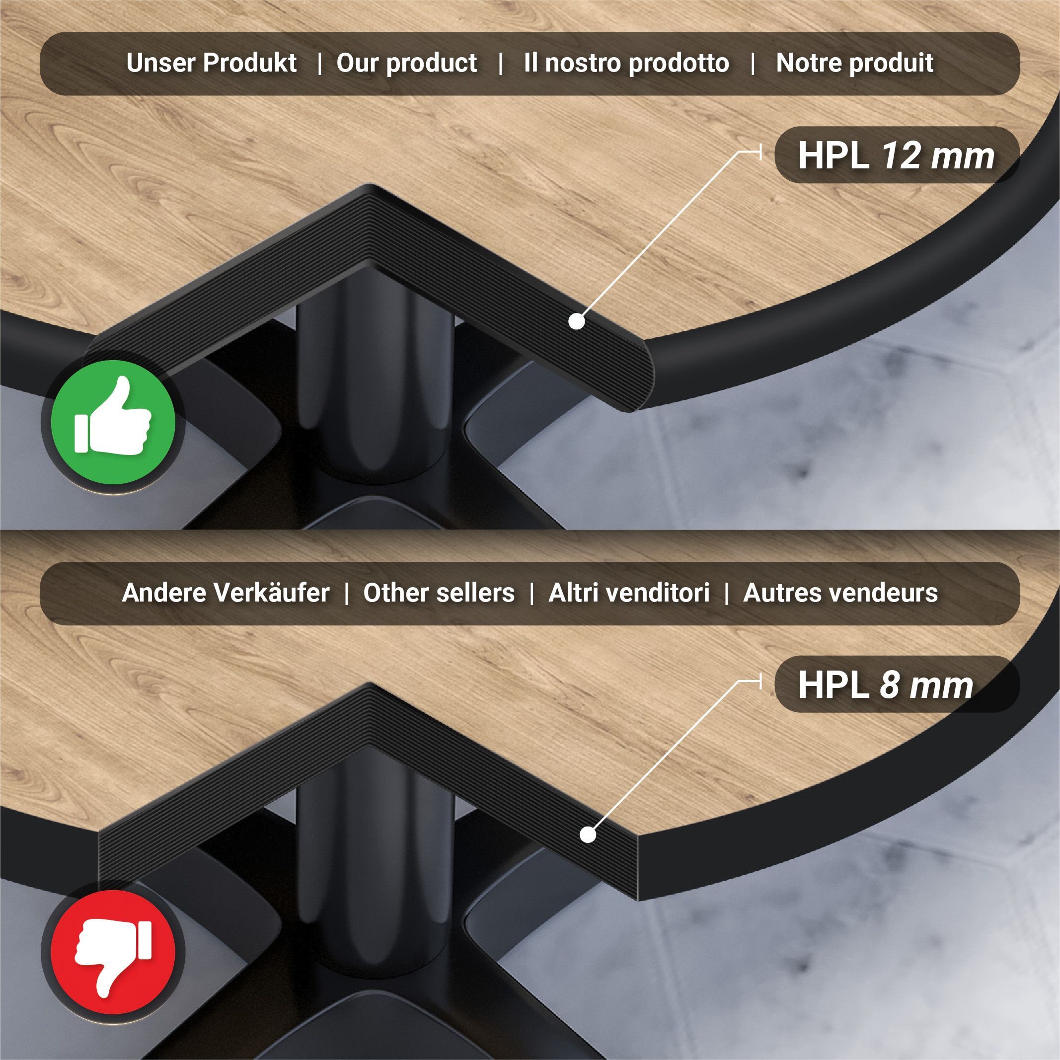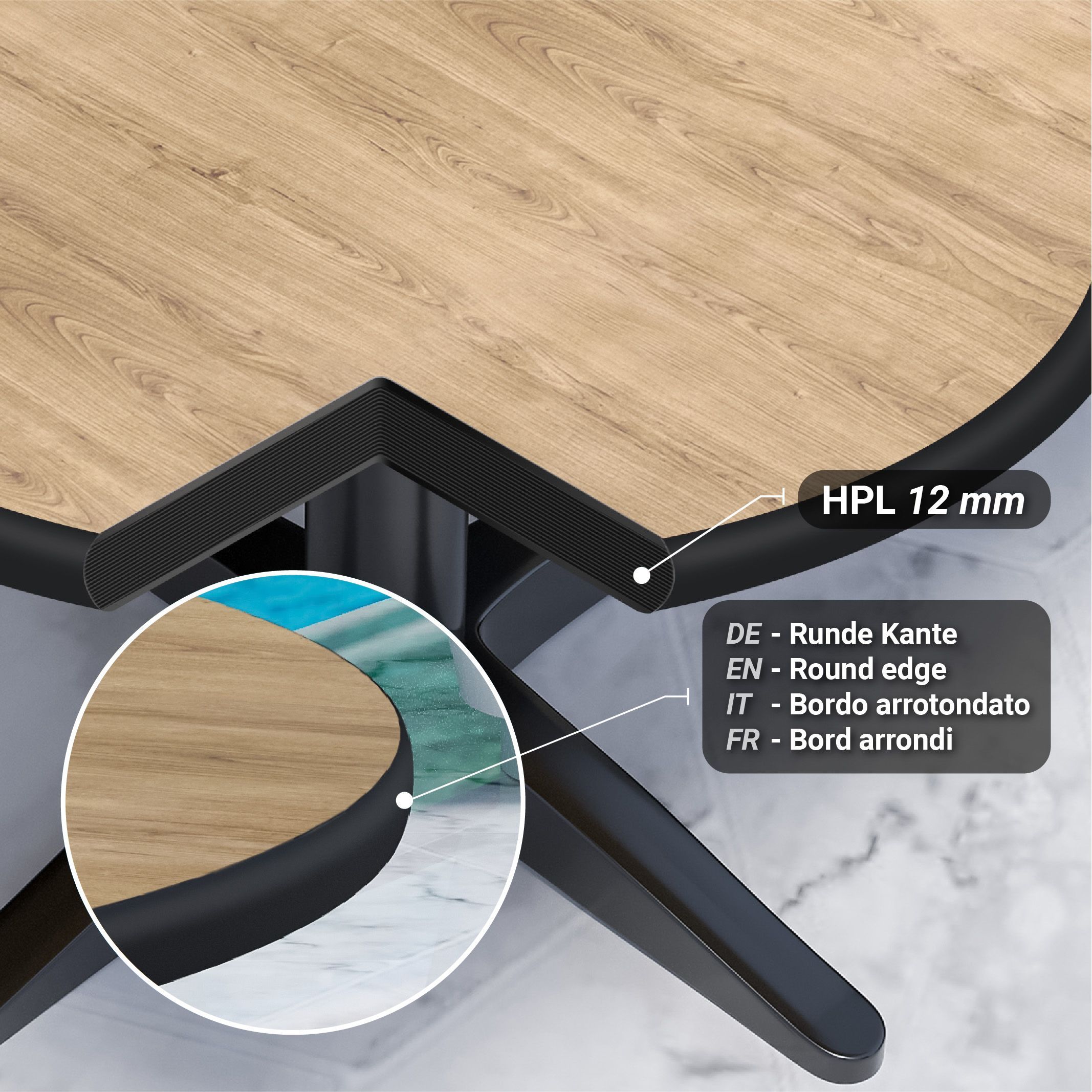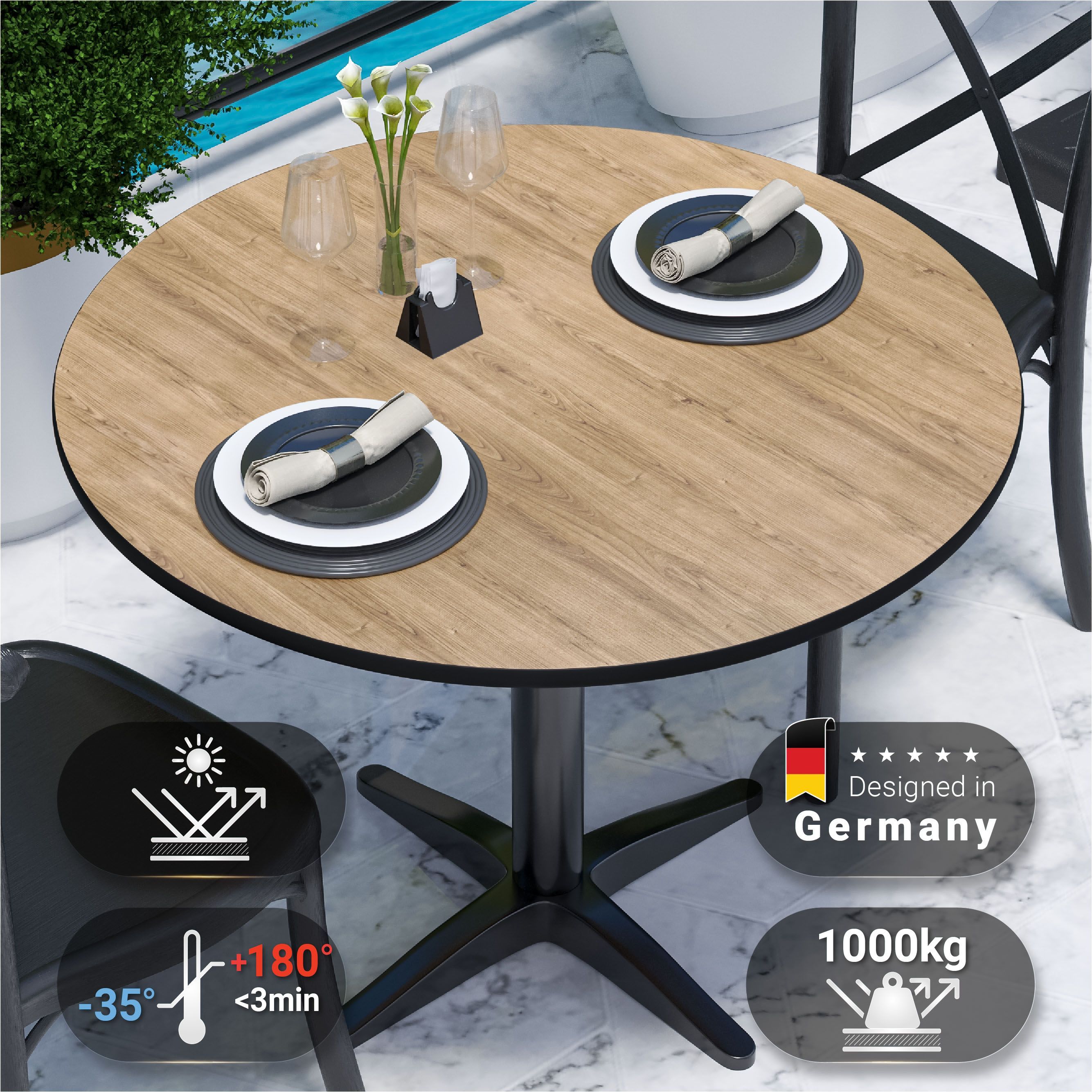 Compact | Gastro HPL Tischplatte | Ø 70 cm | Eiche | Rund | Gastro HPL Tischplatte