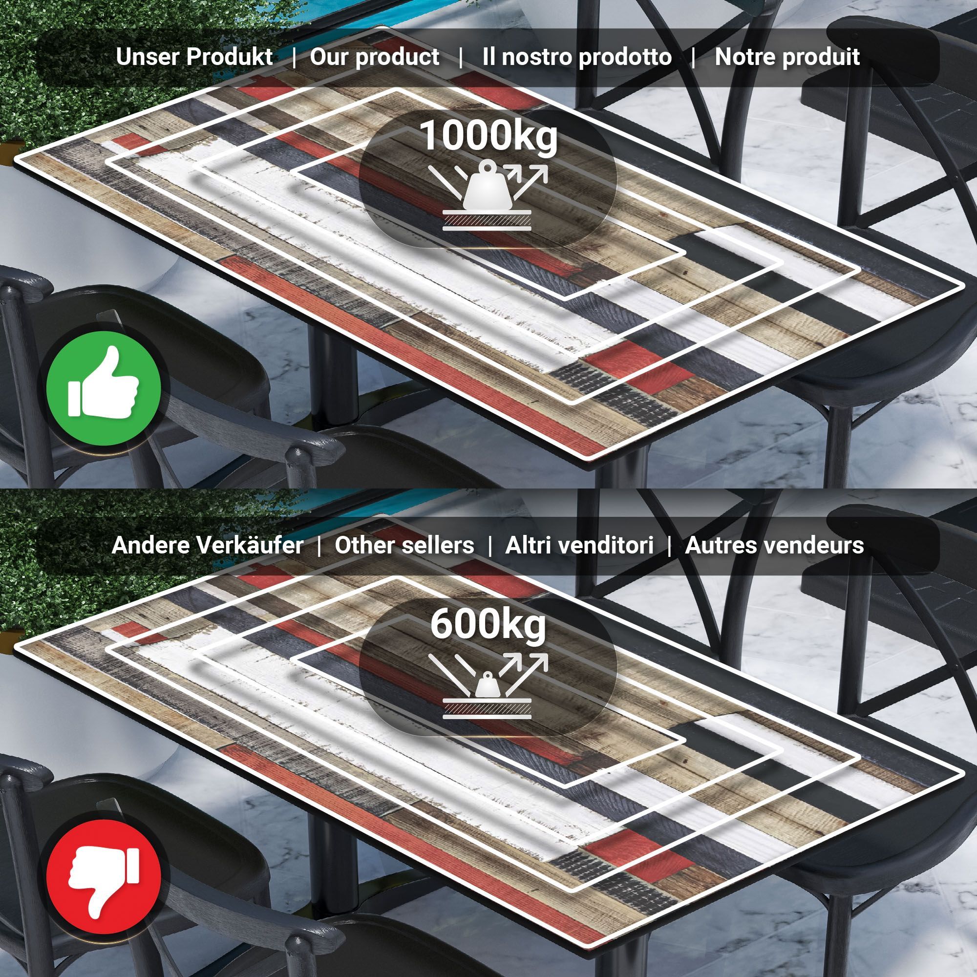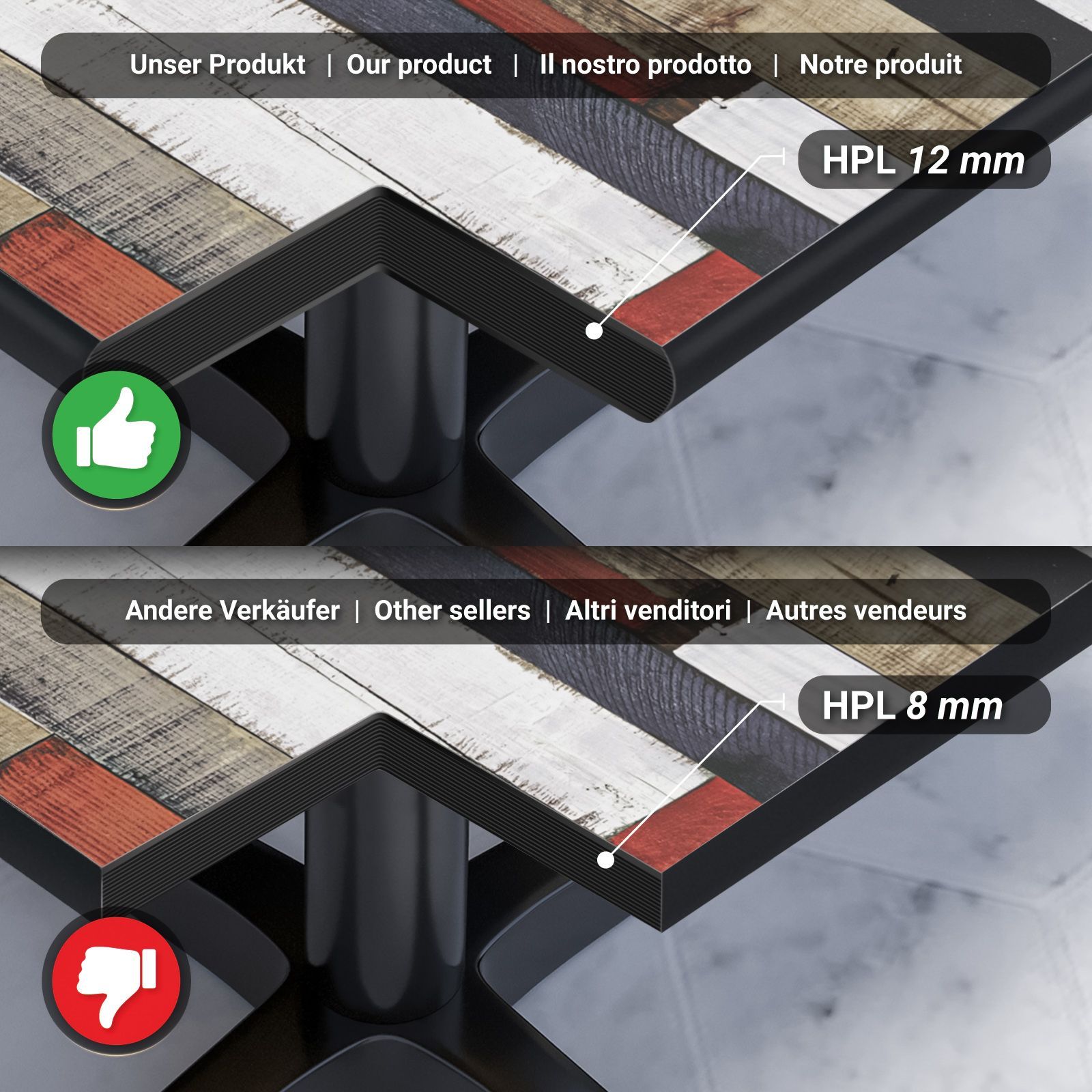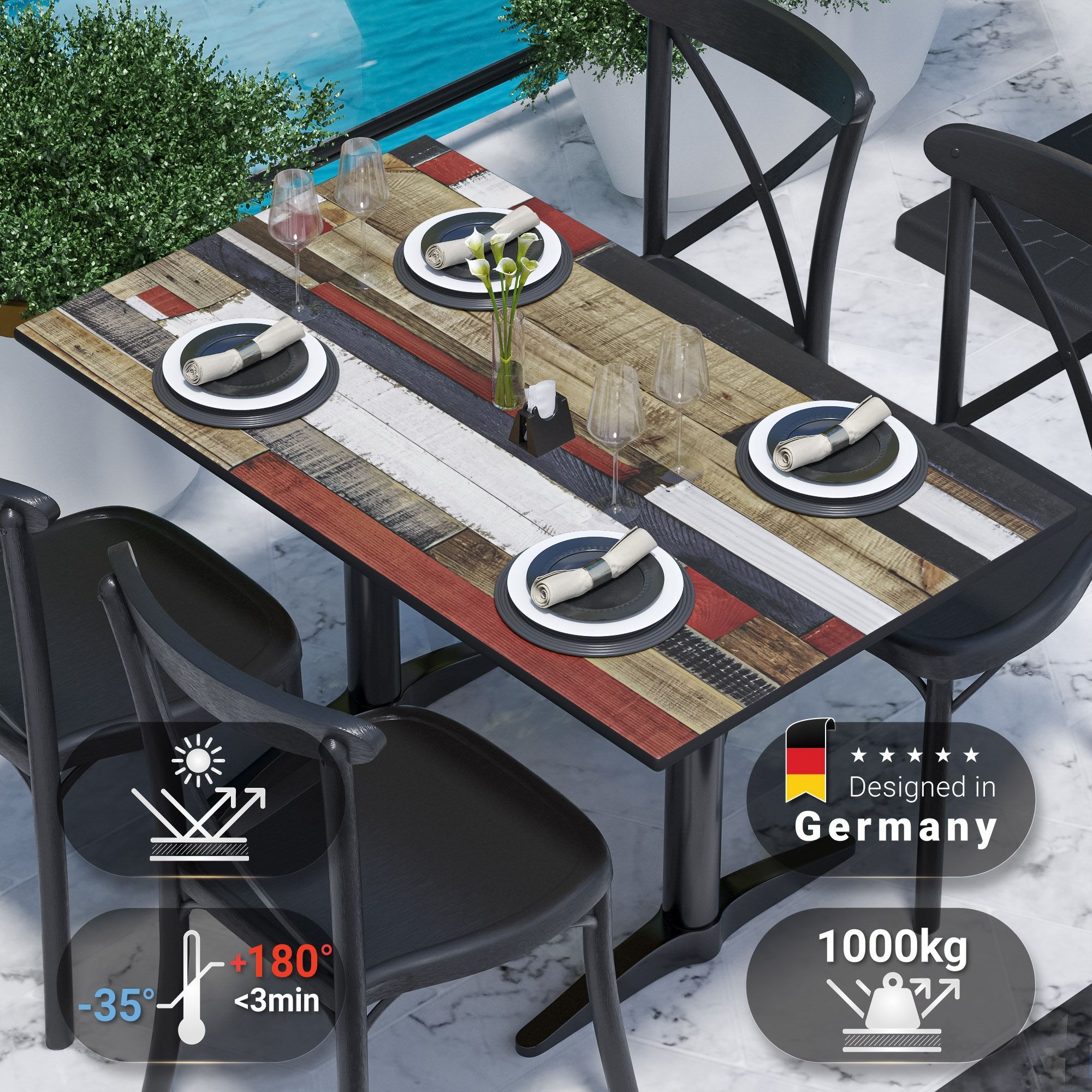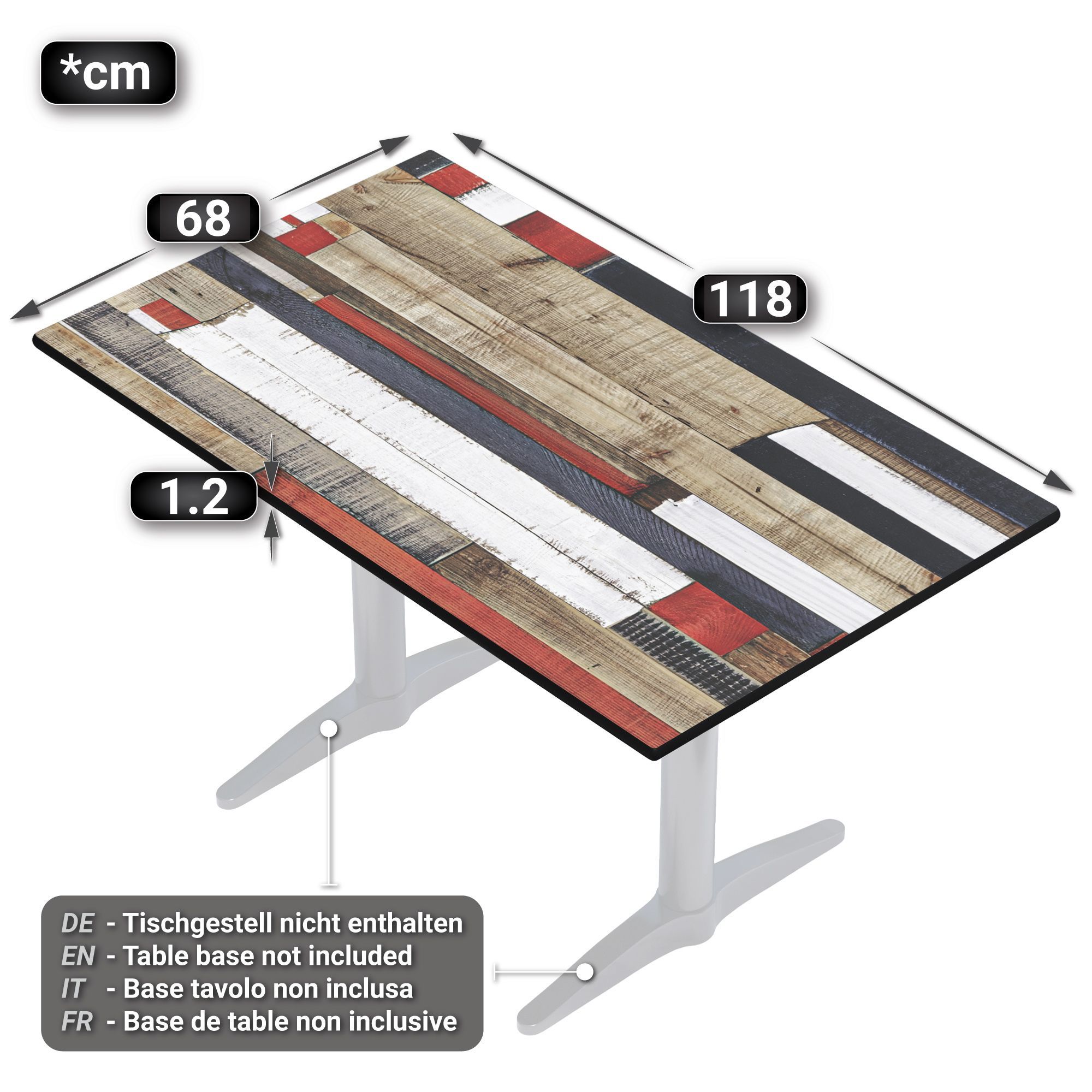 Compact | Gastro HPL Tischplatte | B: 120 x 70 cm | Vintage Bunt | Rechteckig | Gas