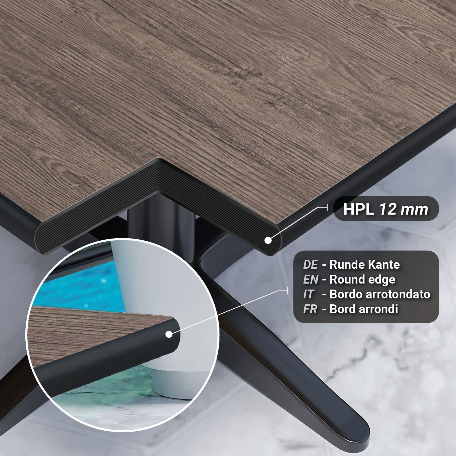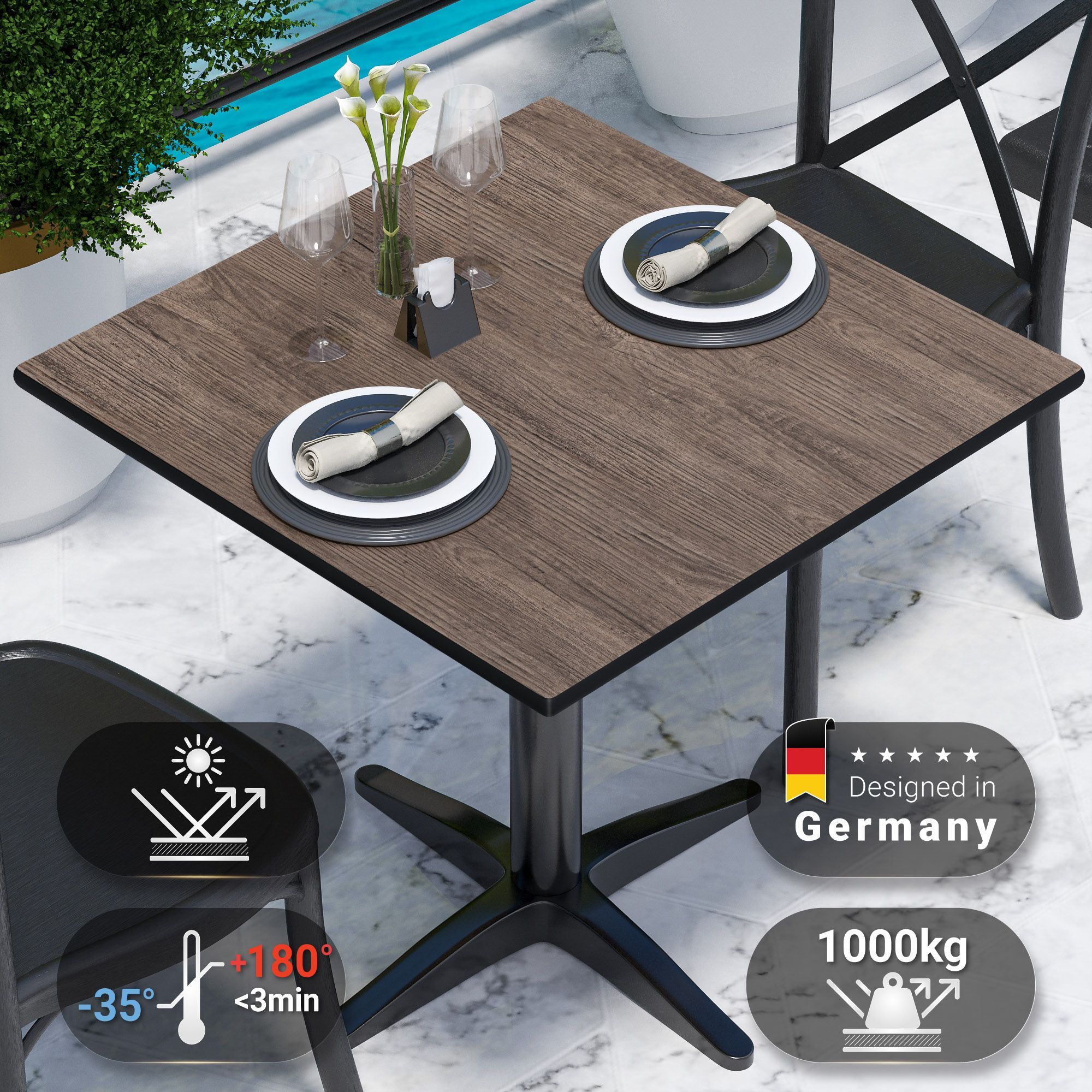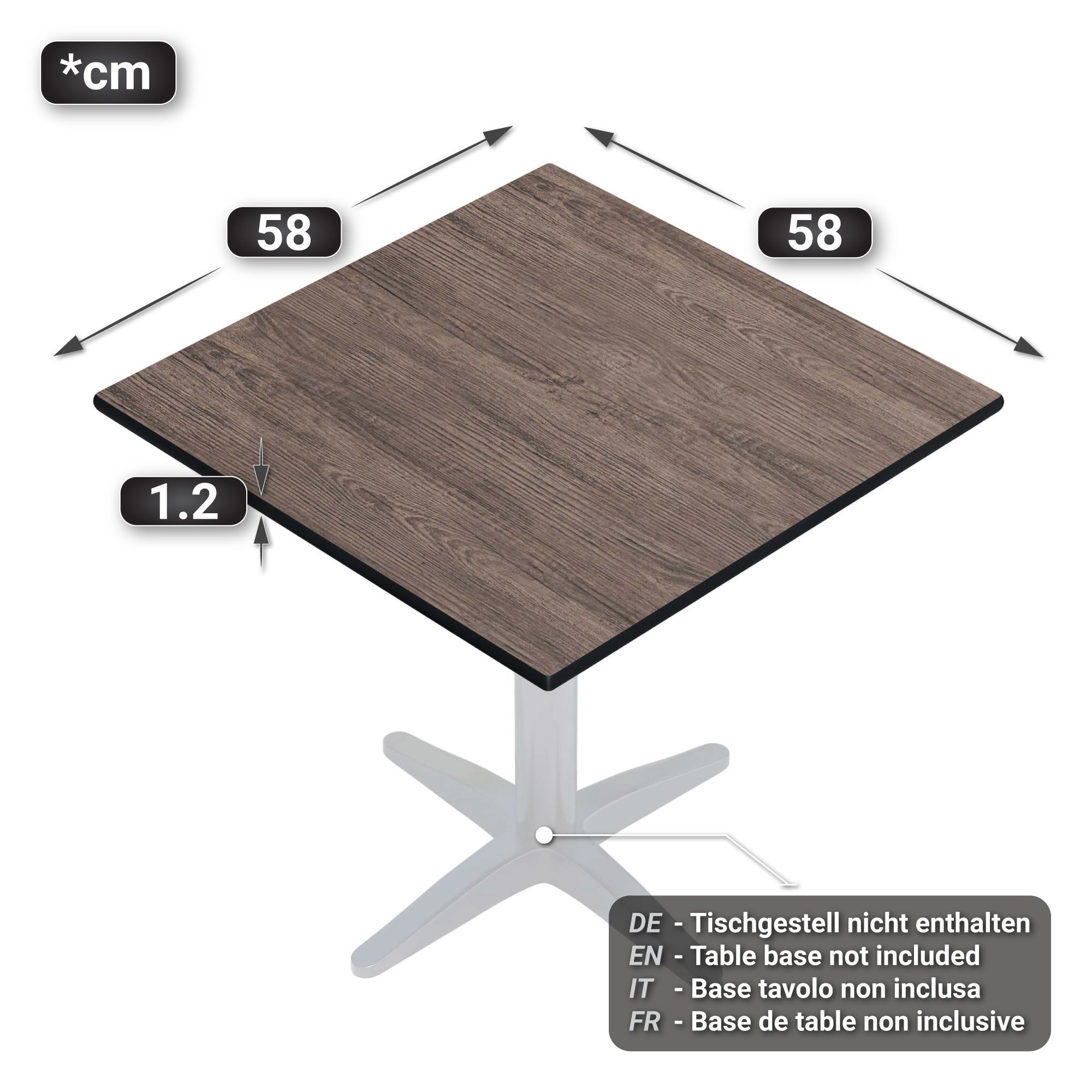 Compact | Gastro HPL Tischplatte | B: 60 x 60 cm | Light Wenge | Quadratisch | Gast