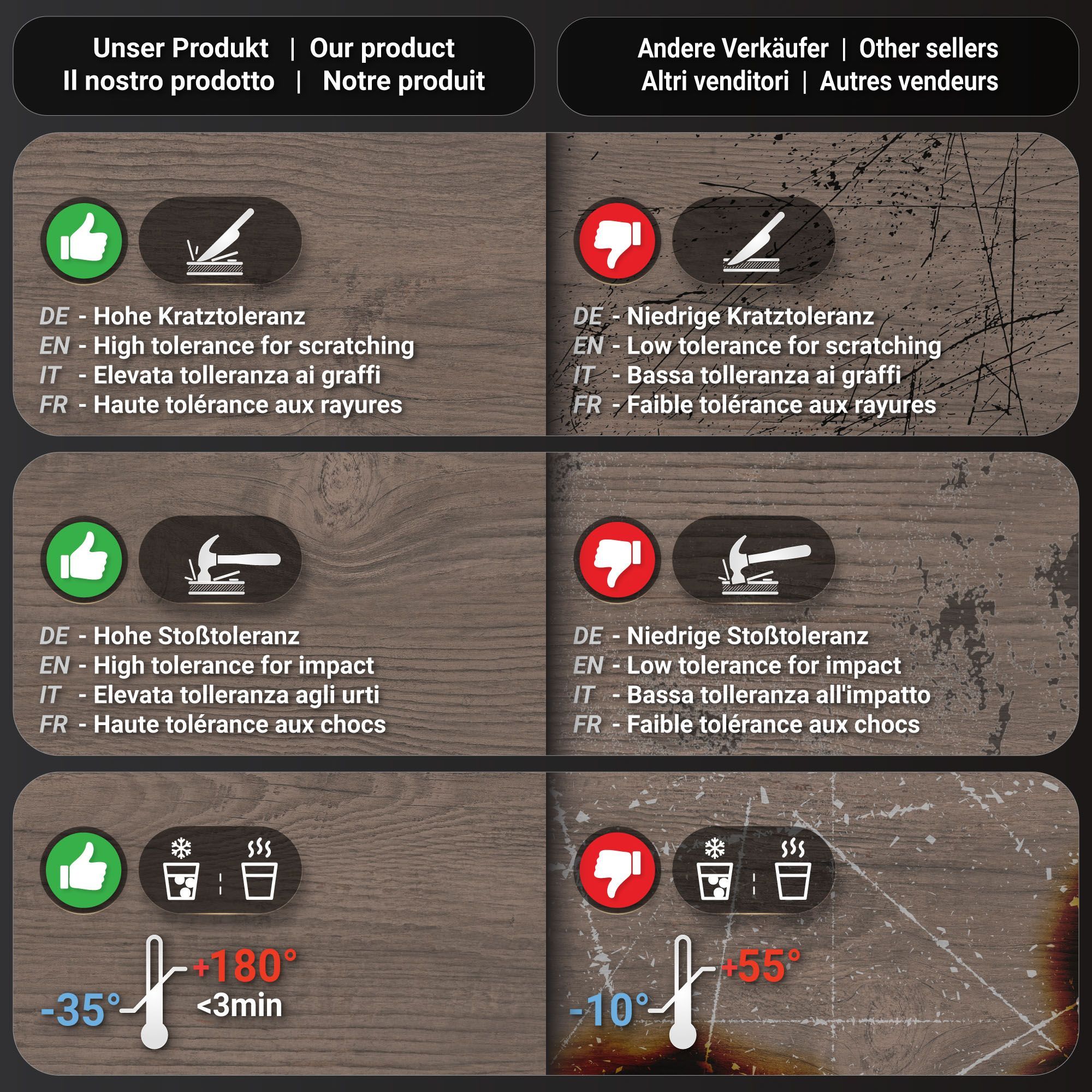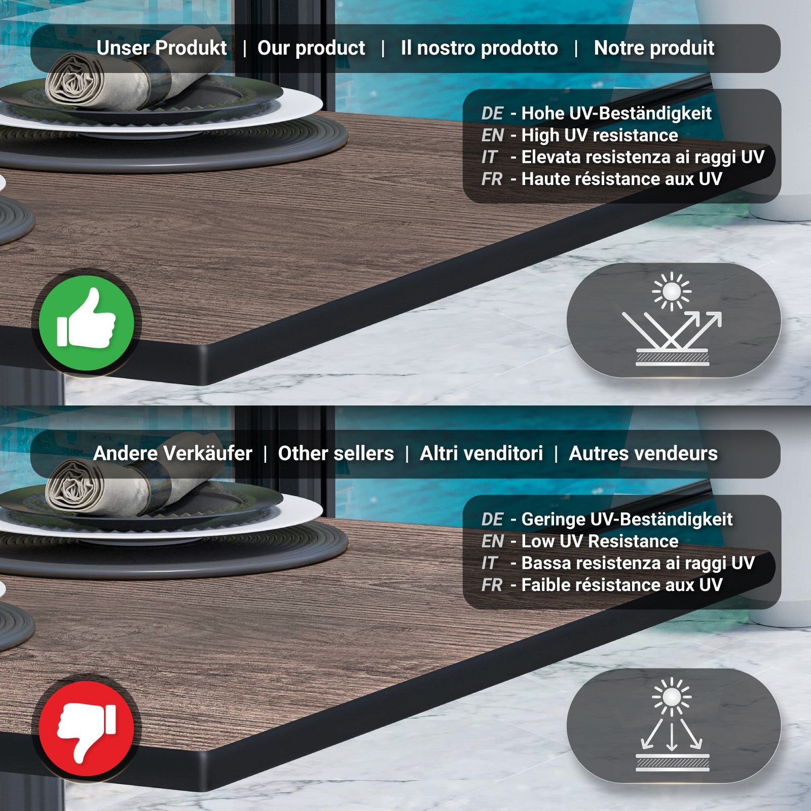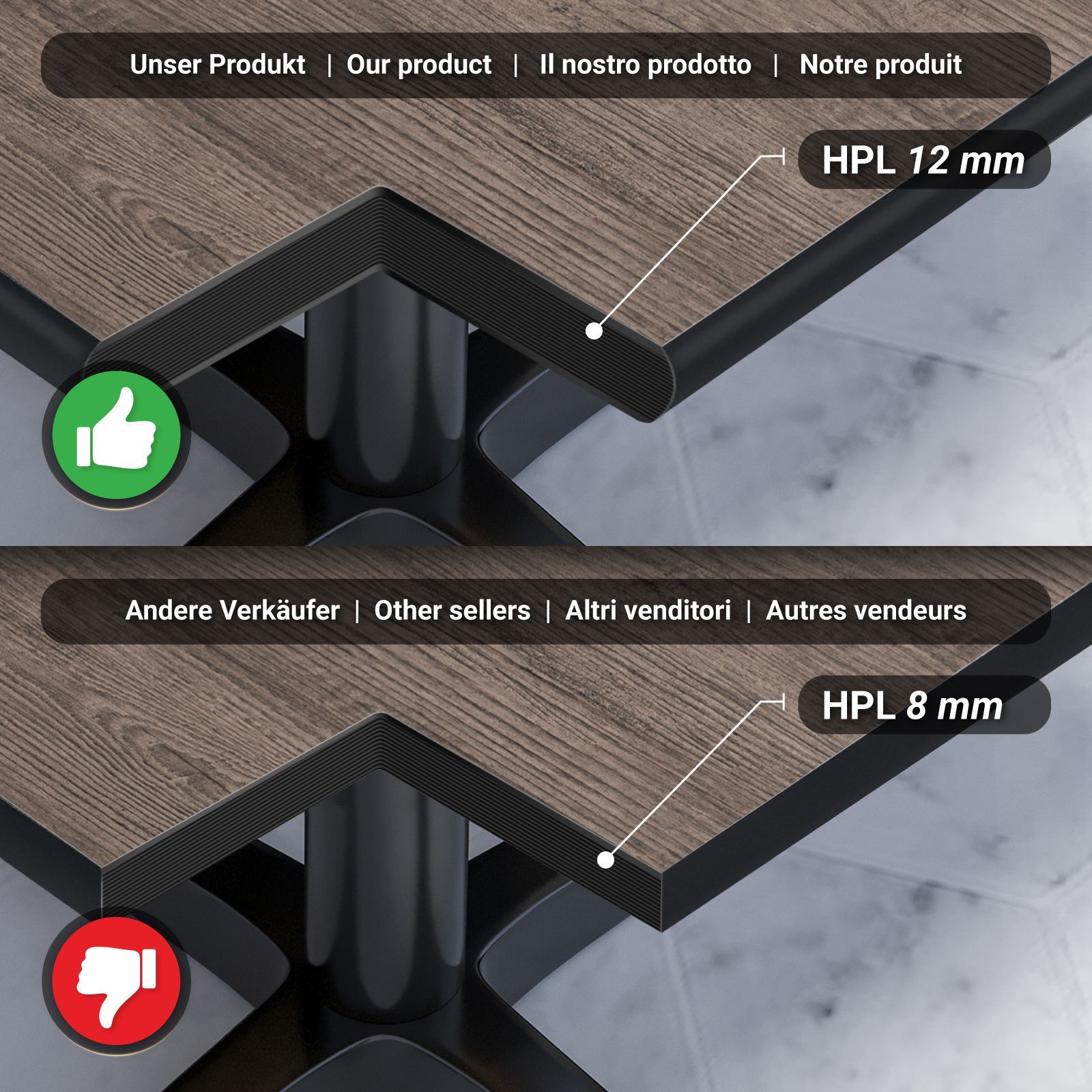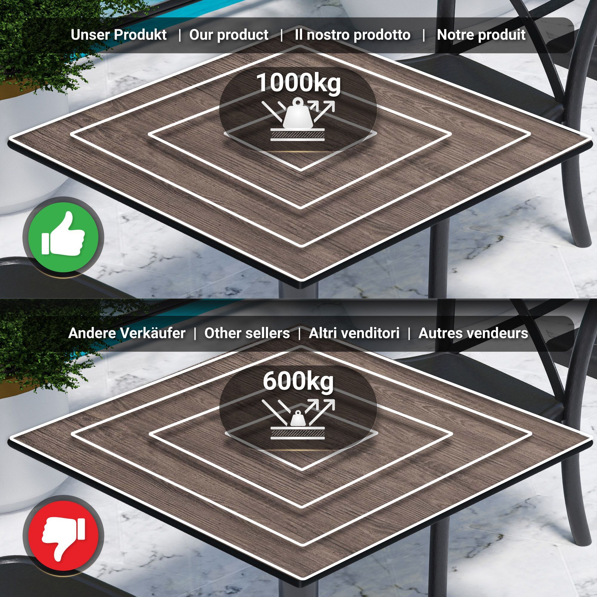 Compact | Gastro HPL Tischplatte | B: 60 x 60 cm | Light Wenge | Quadratisch | Gast
