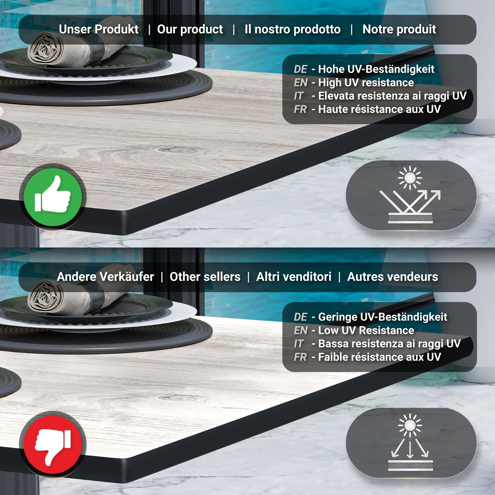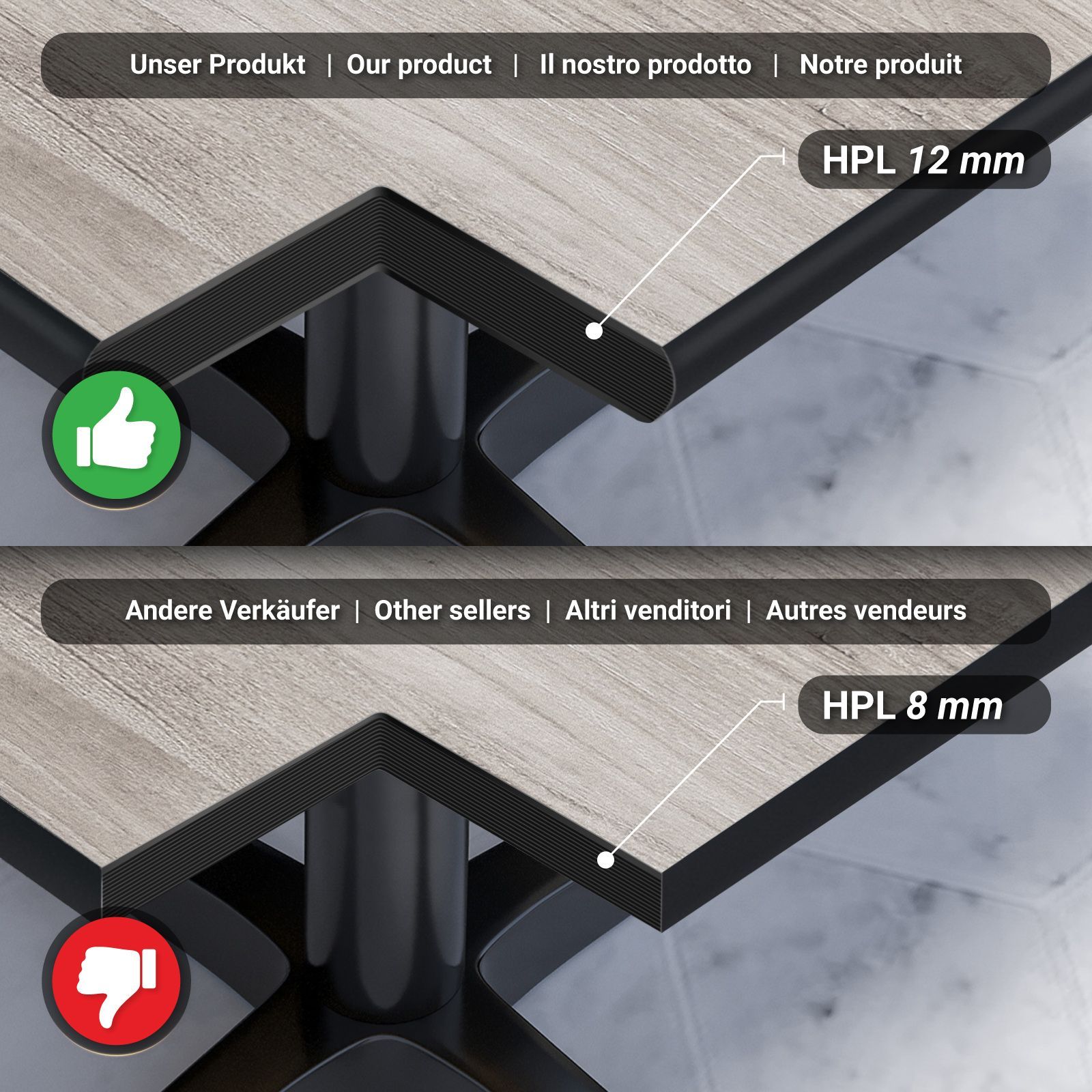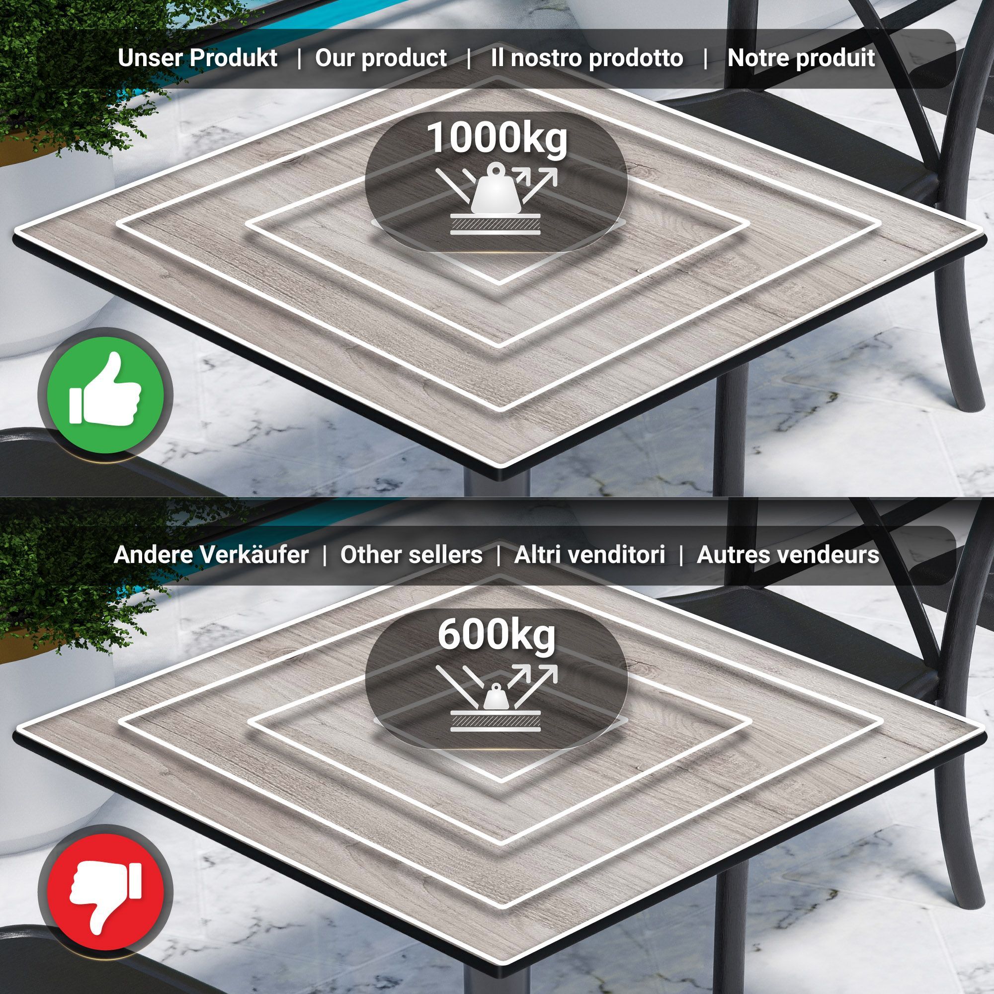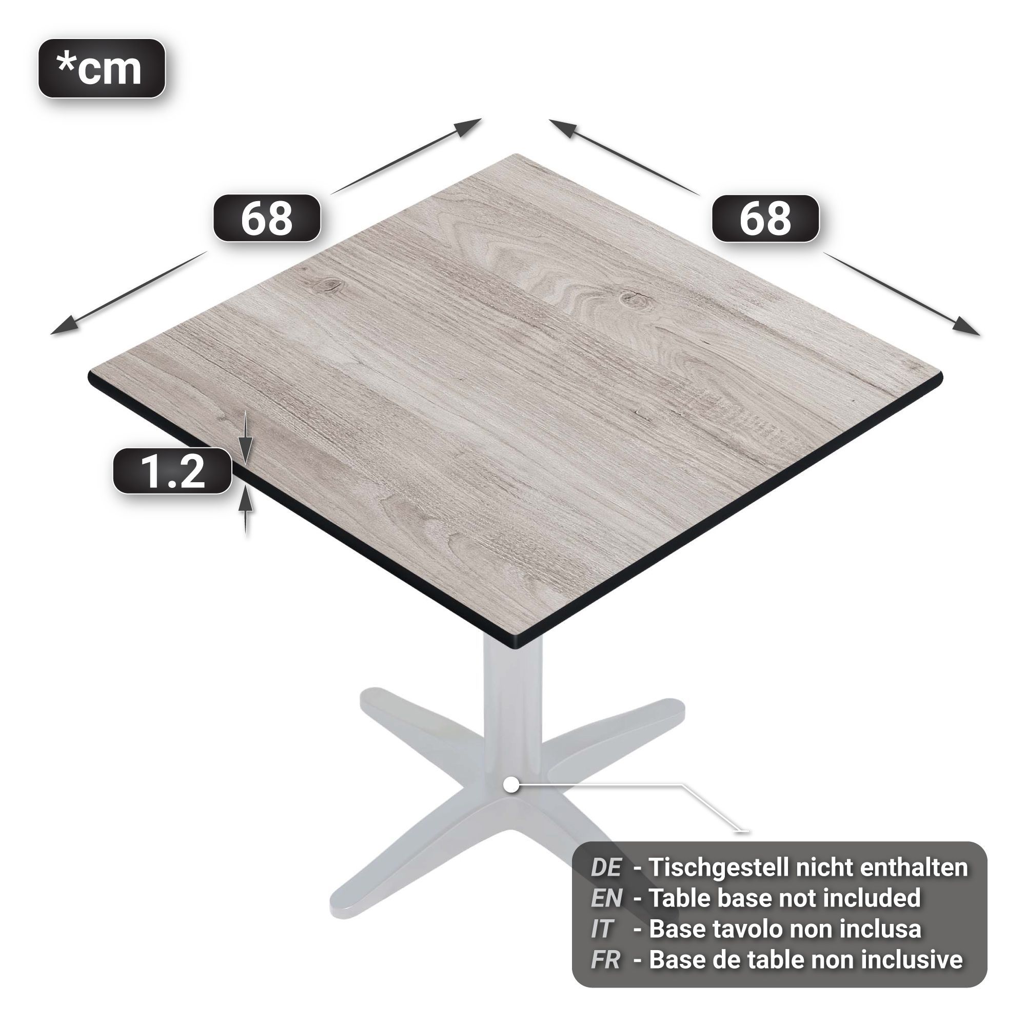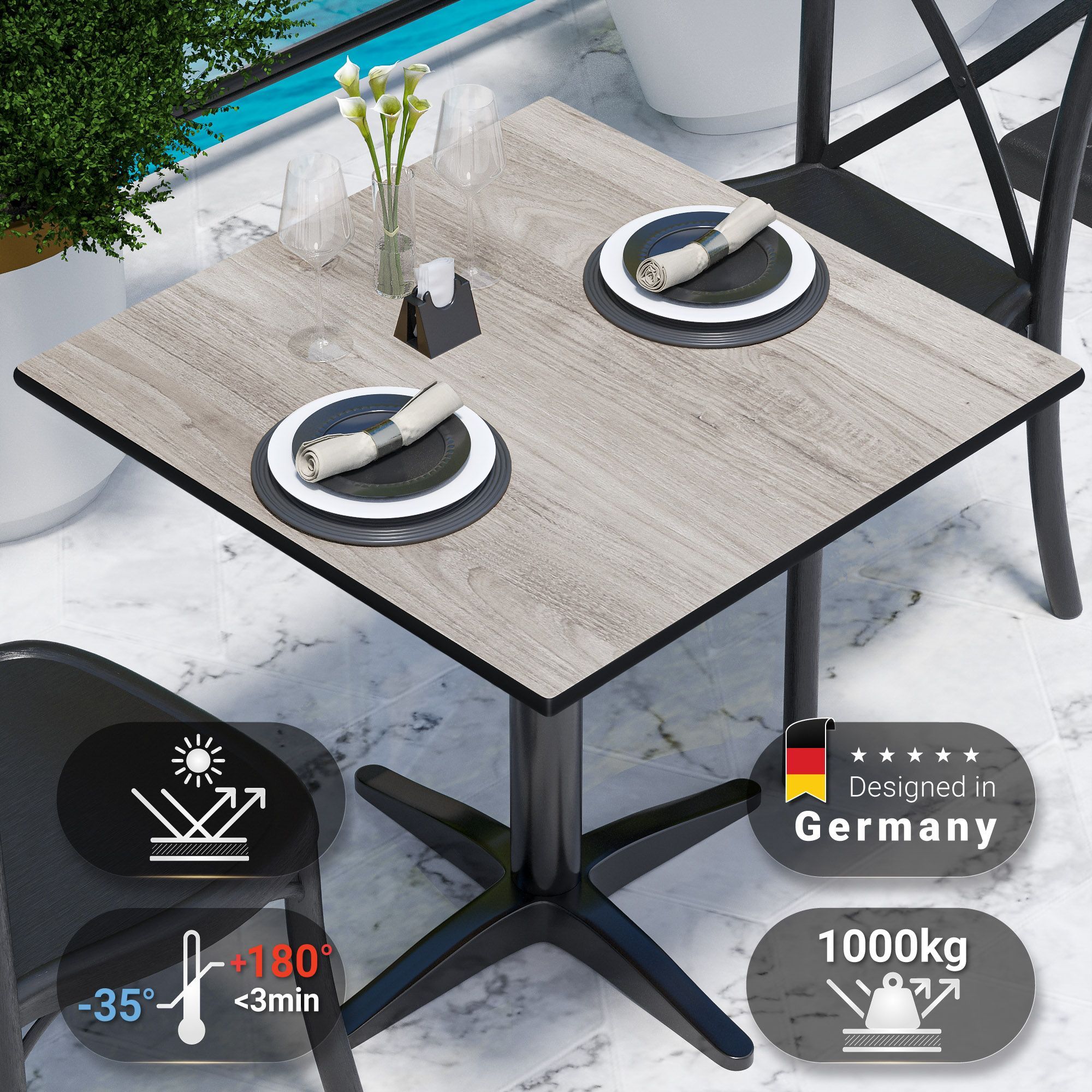 Compact | Gastro HPL Tischplatte | B: 70 x 70 cm | Eiche-Weiß | Quadratisch | Gastr