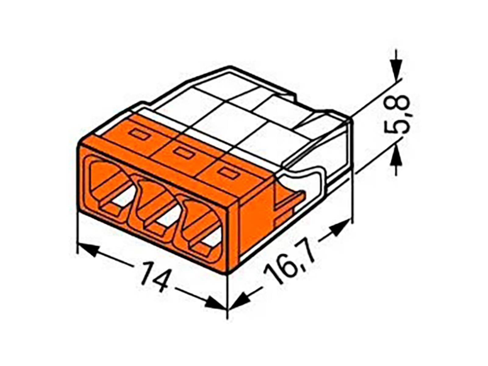 Wago Compact-verbindungsdosenklemme WAGO, eindrähtige Leiter, 3 Klemmstellen, orange