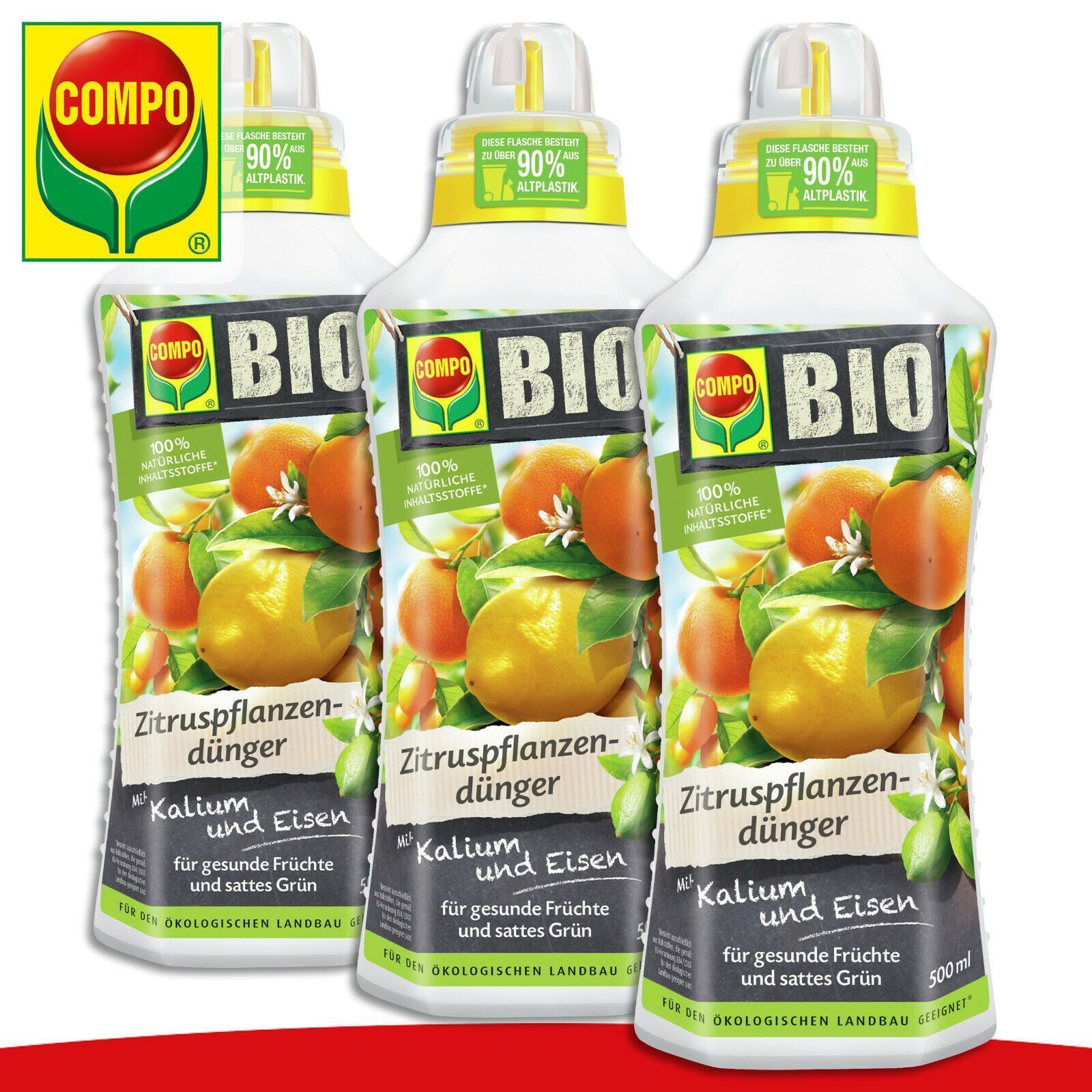 COMPO COMPO 3 x 0,5 l BIO Zitruspflanzendünger | Mit Kalium und Eisen Limette Orangen