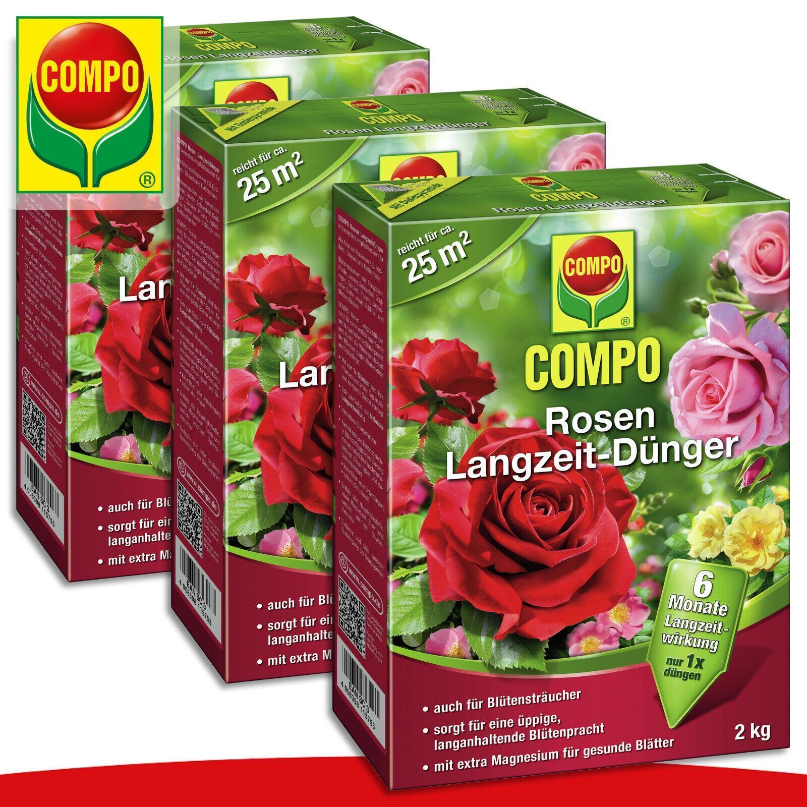Compo COMPO 3 x 2 kg Rosen Langzeit-Dünger | Auch für Blütensträucher