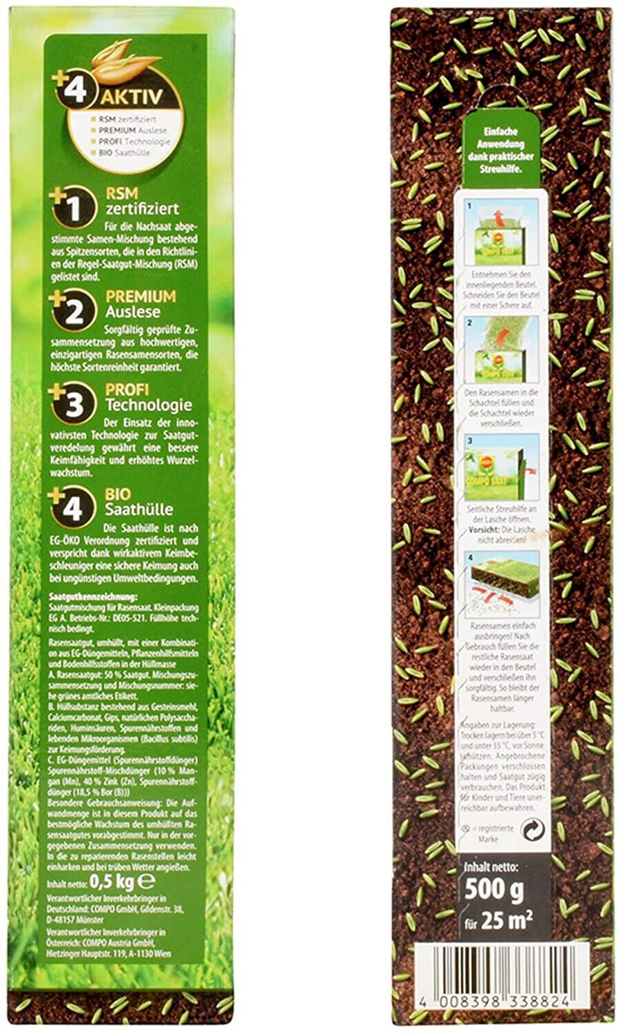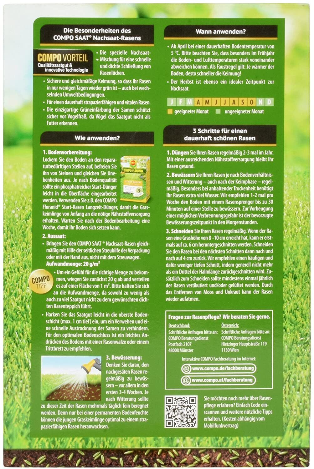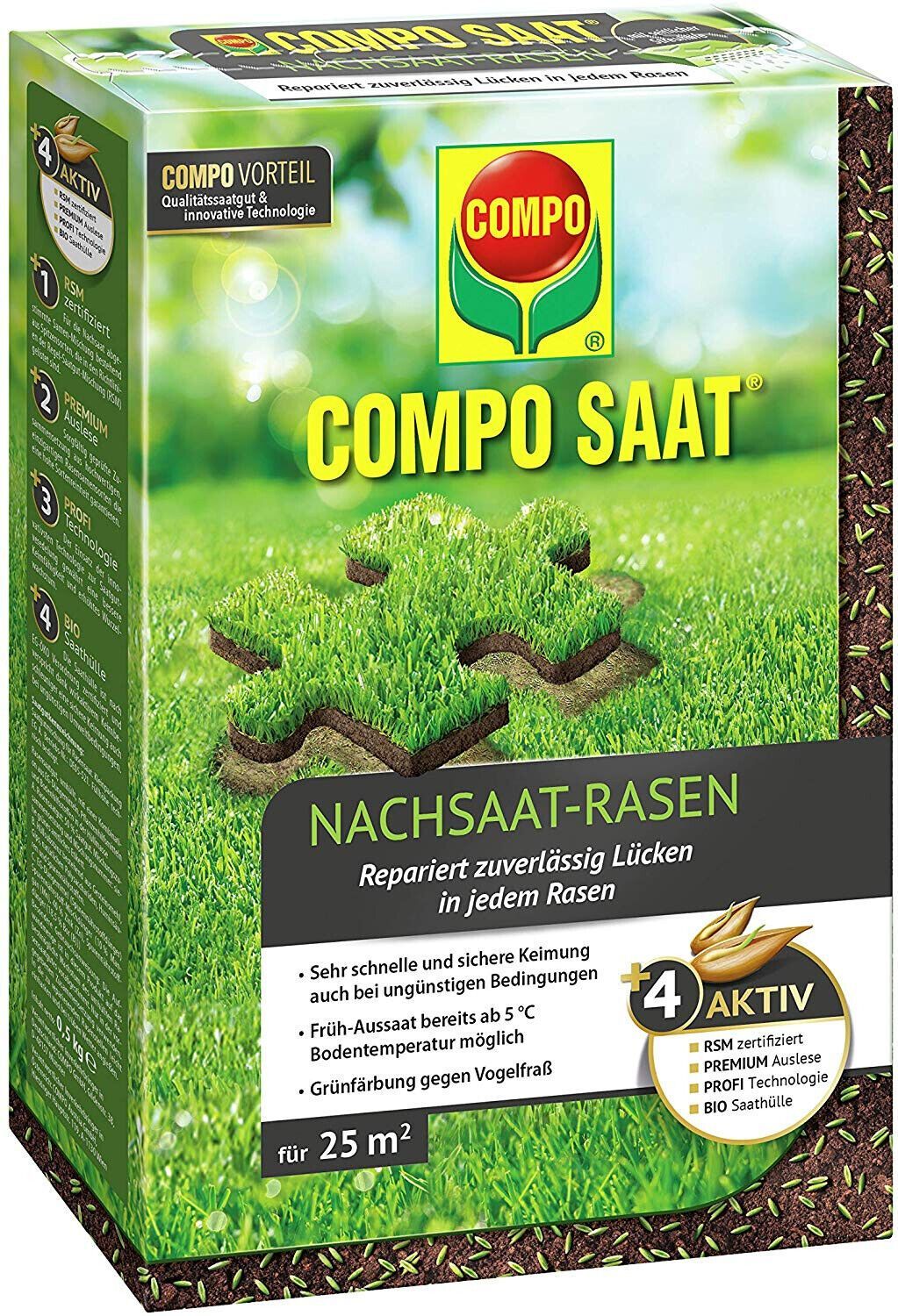 COMPO COMPO SAAT Nachsaat-Rasen Mischung Keimbeschleuniger Rasensamen Garten 500 g