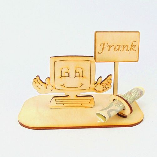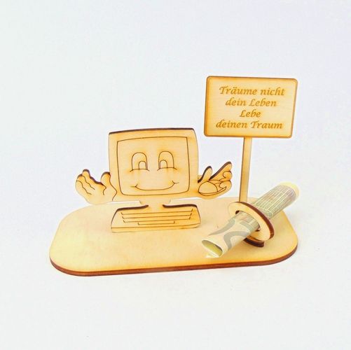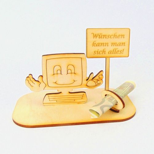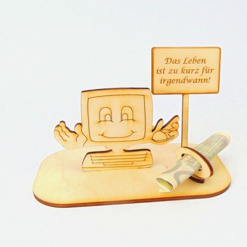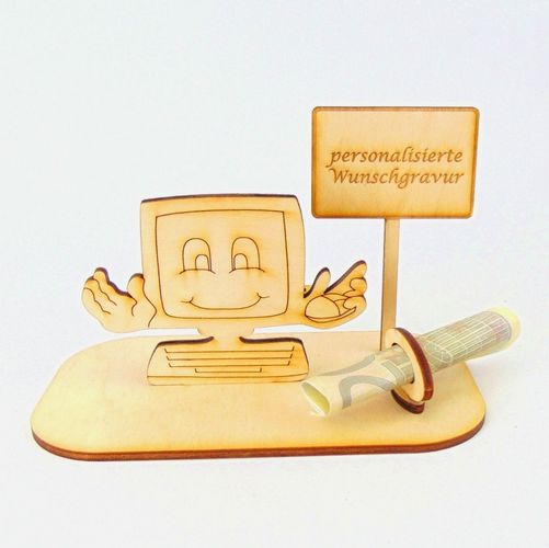 Computer Geld und/ oder Gutschein Geschenk aus Holz " Sprüche " Personalisiert-K76-