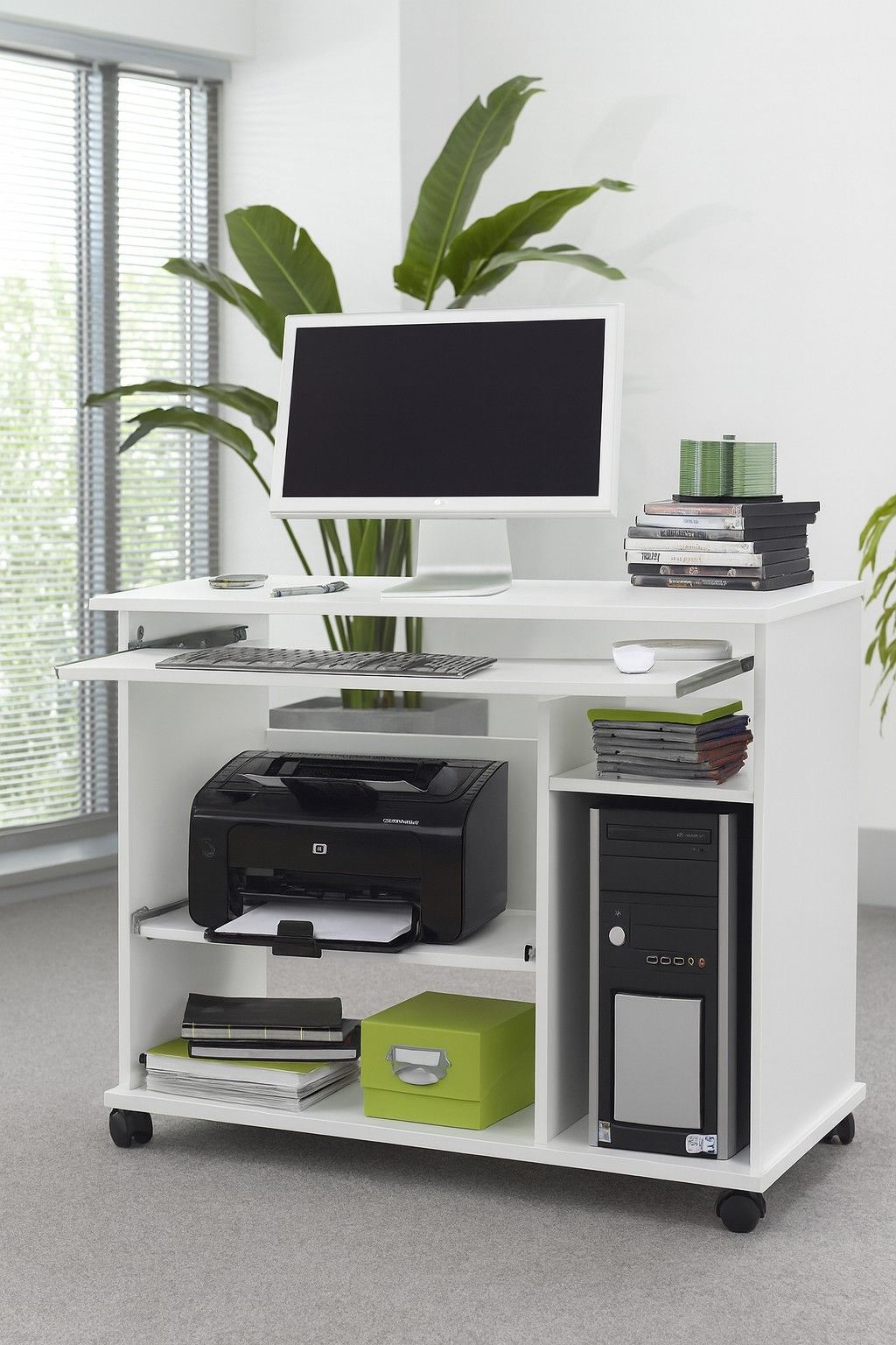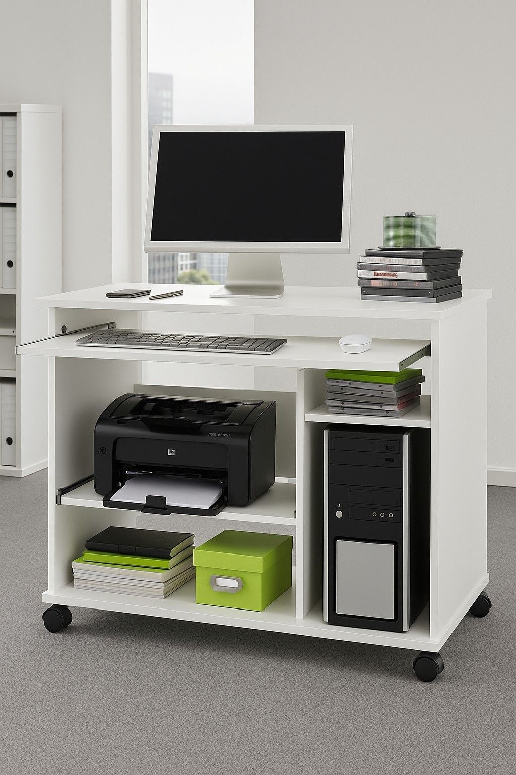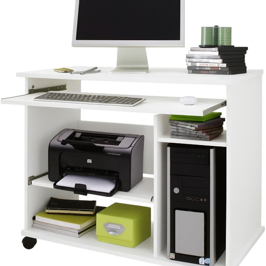 Computertisch Schreibtisch PC-Tisch weiß Tastatur- Druckerauszug #3998