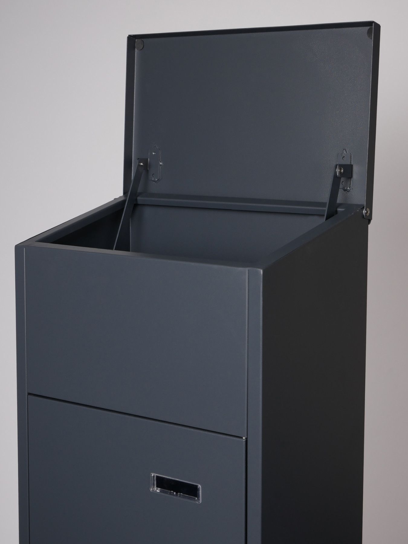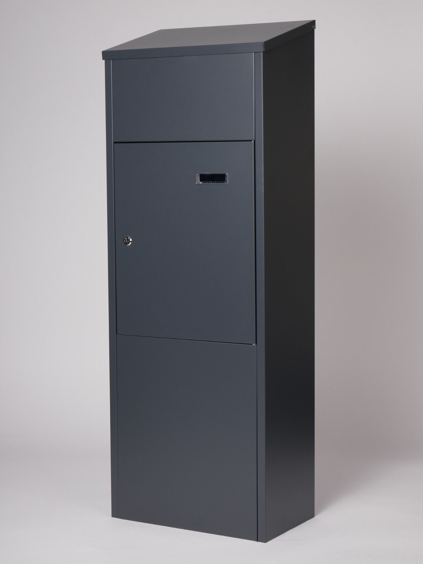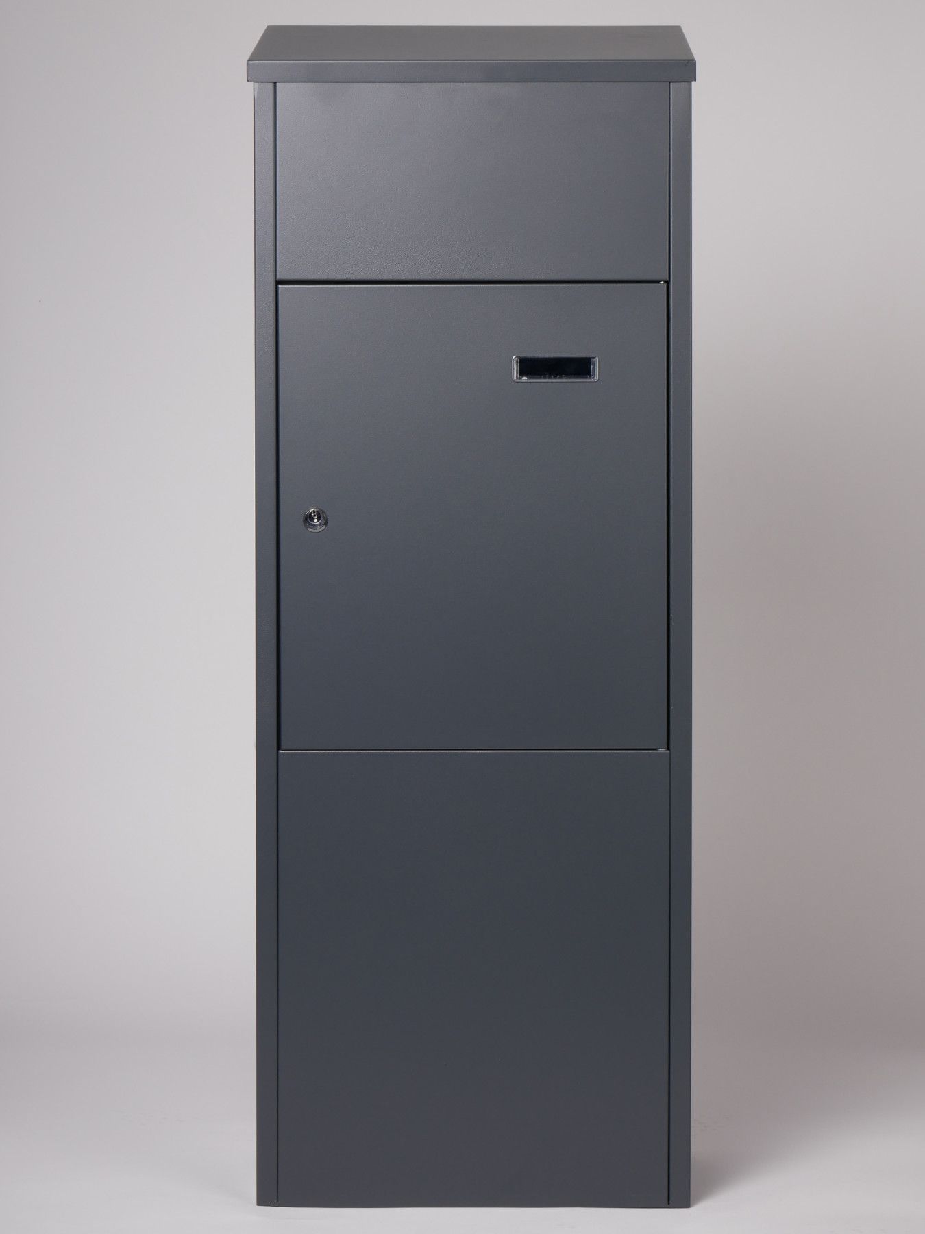 Comwerso Paketbriefkasten Heide anthrazit mit Namensschild, Entnahme vorne
