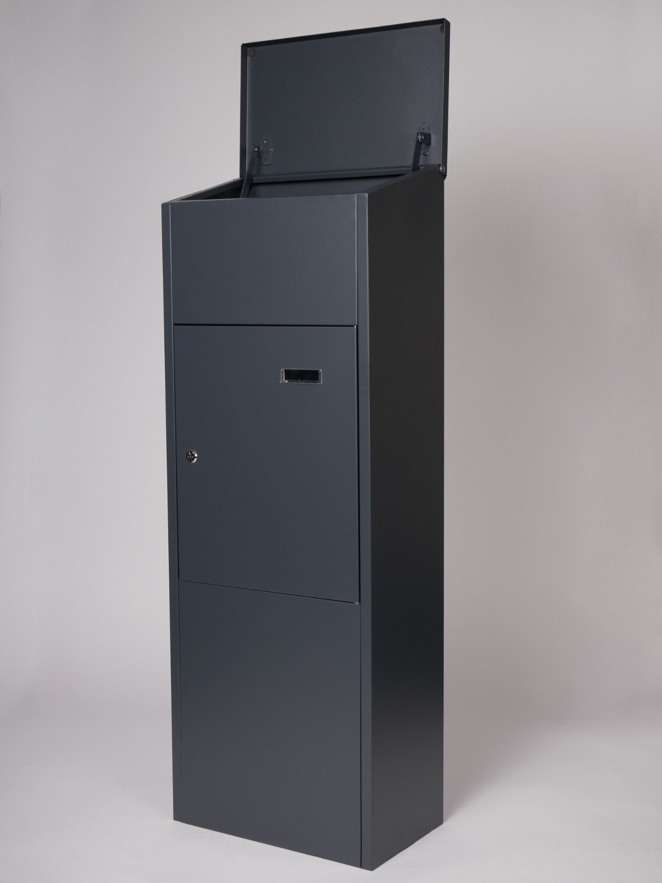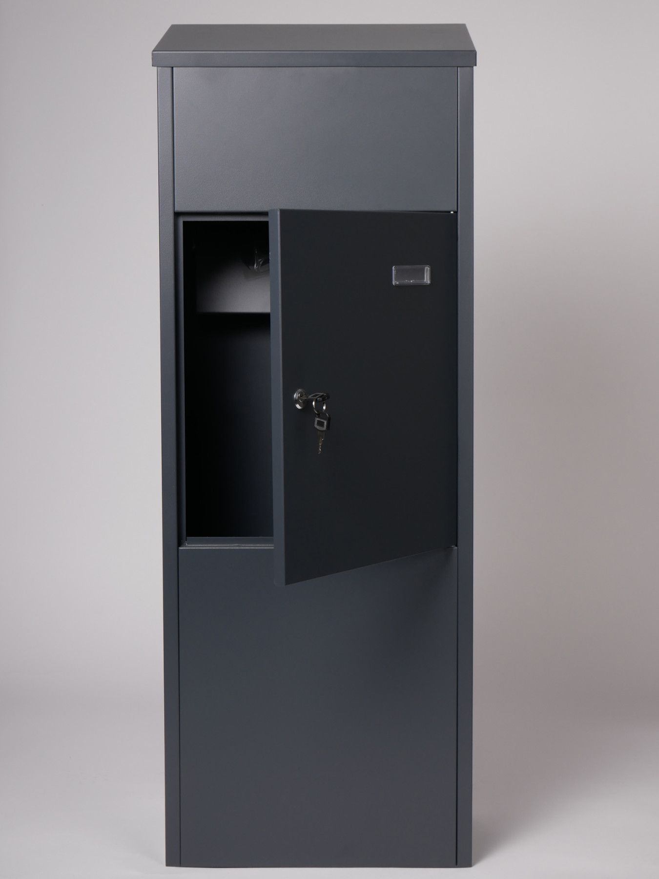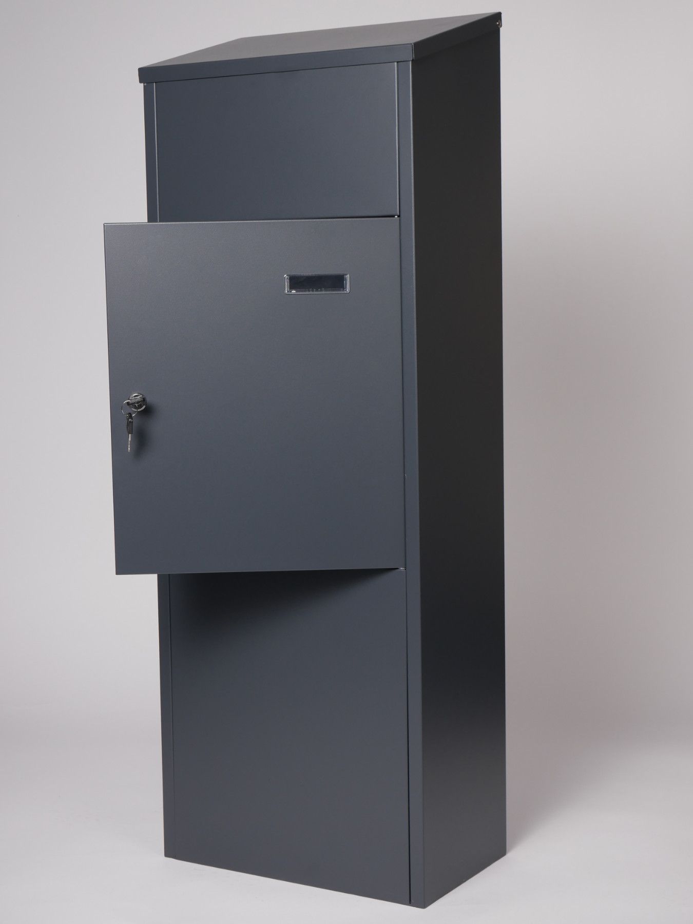 Comwerso Paketbriefkasten Heide anthrazit mit Namensschild, Entnahme vorne