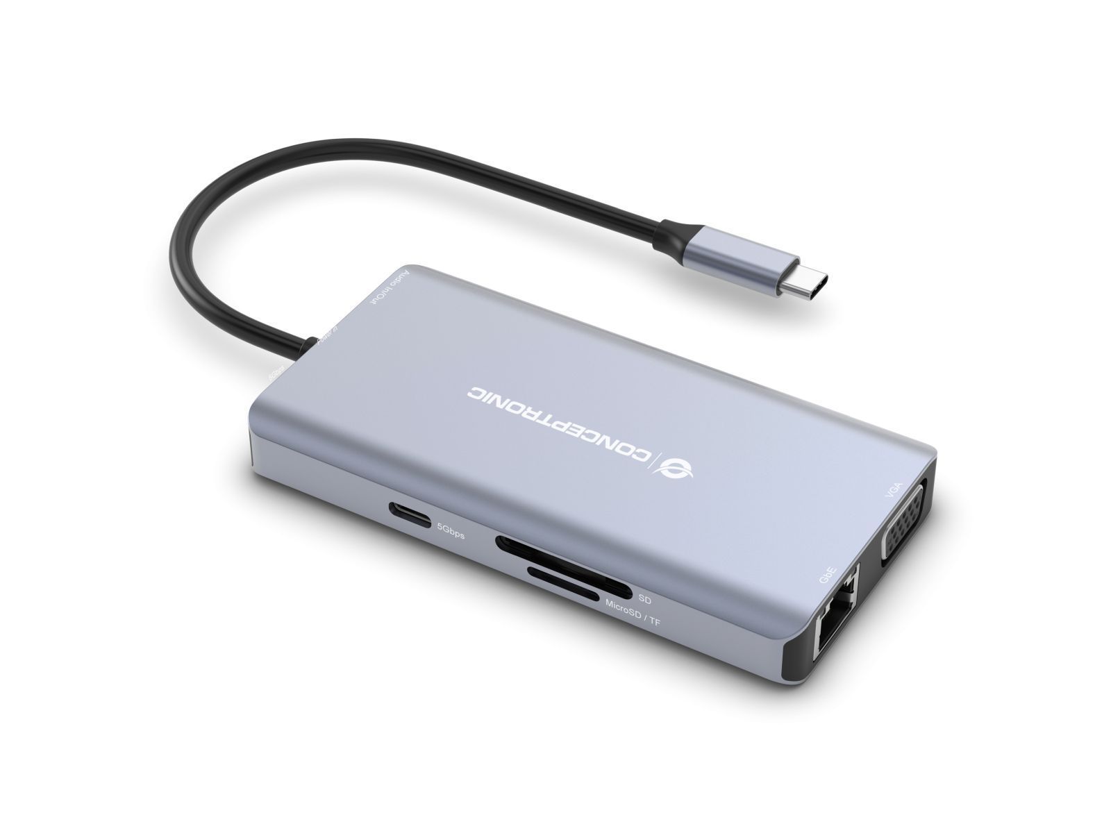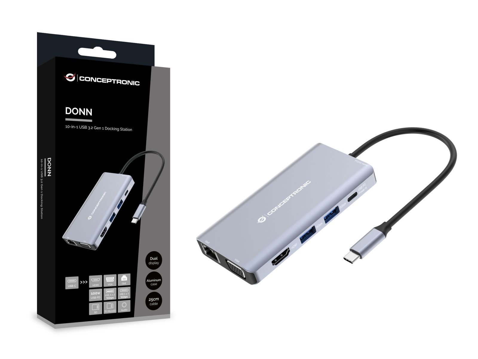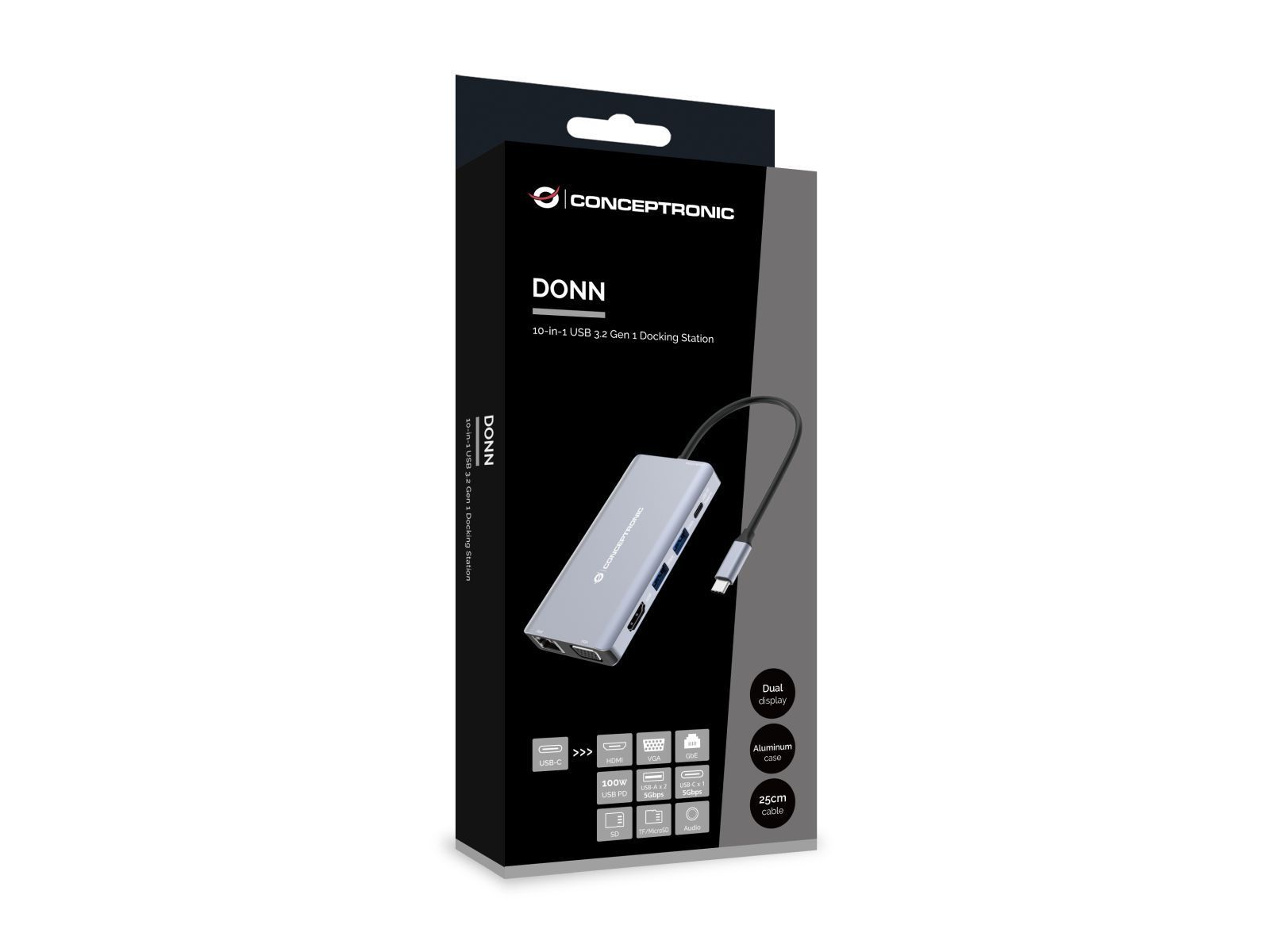 Conceptronic Conceptronic DONN20G 10-in-1 USB 3.2 Gen 1 Dockingstation, HDMI, VGA, USB-A 5Gbps, US