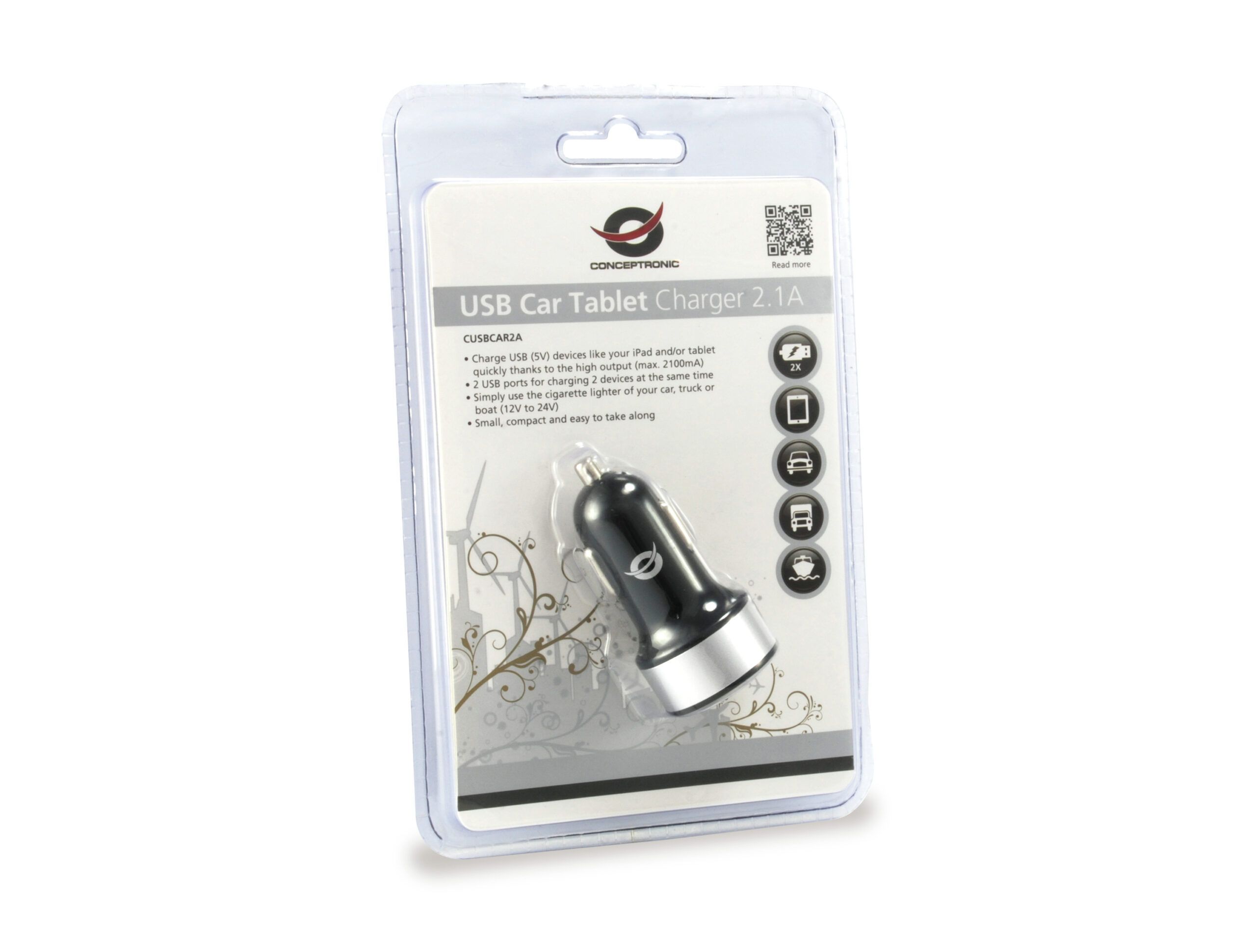 Conceptronic USB Car Tablet Charger 2A