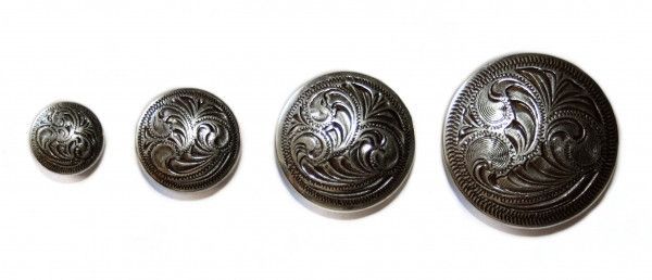 Concho Laramie mit Chicago Screw Durchmesser ca. 3 cm mit kurzer Schraube Wir setzen auf Nachhaltigkeit und verwenden deshalb für den Versand auch gebrauchte Kartons. Wir gehen davon aus, dass das auch für sie in Ordnung ist.