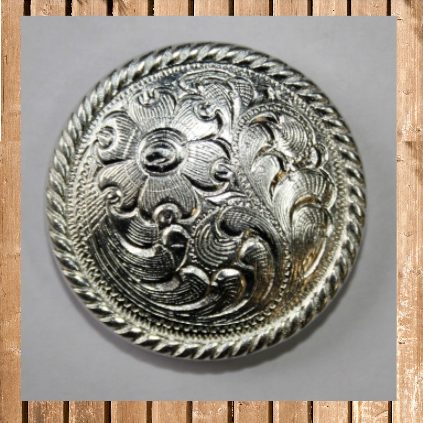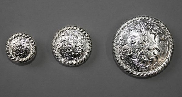 Concho Round Rope mit Chicago Screw Durchmesser ca. 4 cm mit kurzer Schraube Wir setzen auf Nachhaltigkeit und verwenden deshalb für den Versand auch gebrauchte Kartons. Wir gehen davon aus, dass das auch für sie in Ordnung ist.