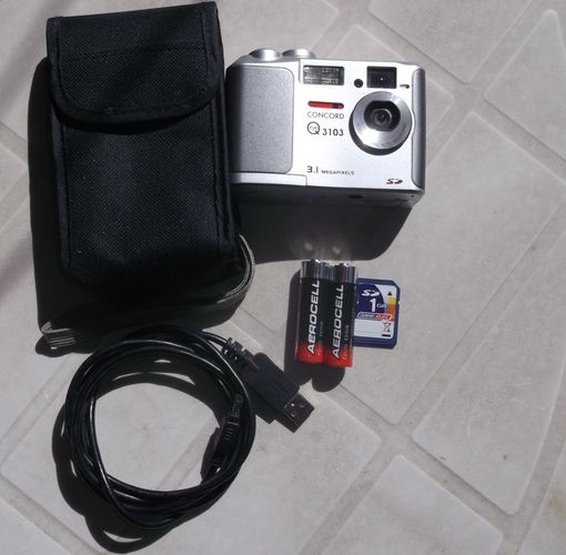 Versand möglich – aktuelle Versandkosten erfragen. Bezahlung per Überweisung. Concord Eye Q 3103 Set mit der digitale Kompaktkamera 3,1MP mit 3x dig. Zoom, mit SD 1 GB Speicherkarte, Kamerahülle, Datenübertragungskabel. Betrieben wird der Fotoapparat mit 2 AA Batterien. Alternativ kann man auc