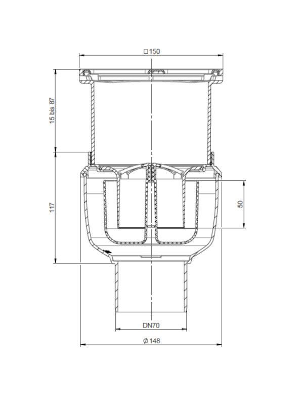 Conel Drain Bodenablauf DN 70 senkrecht mit Aufsatz Rost 150mm