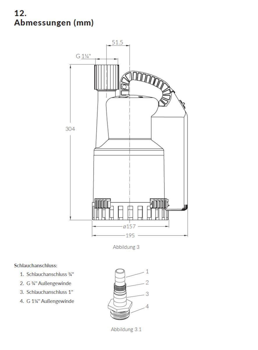 Conel Flow Tauchpumpe TP12-N mit innenliegender Schwimmerschaltung