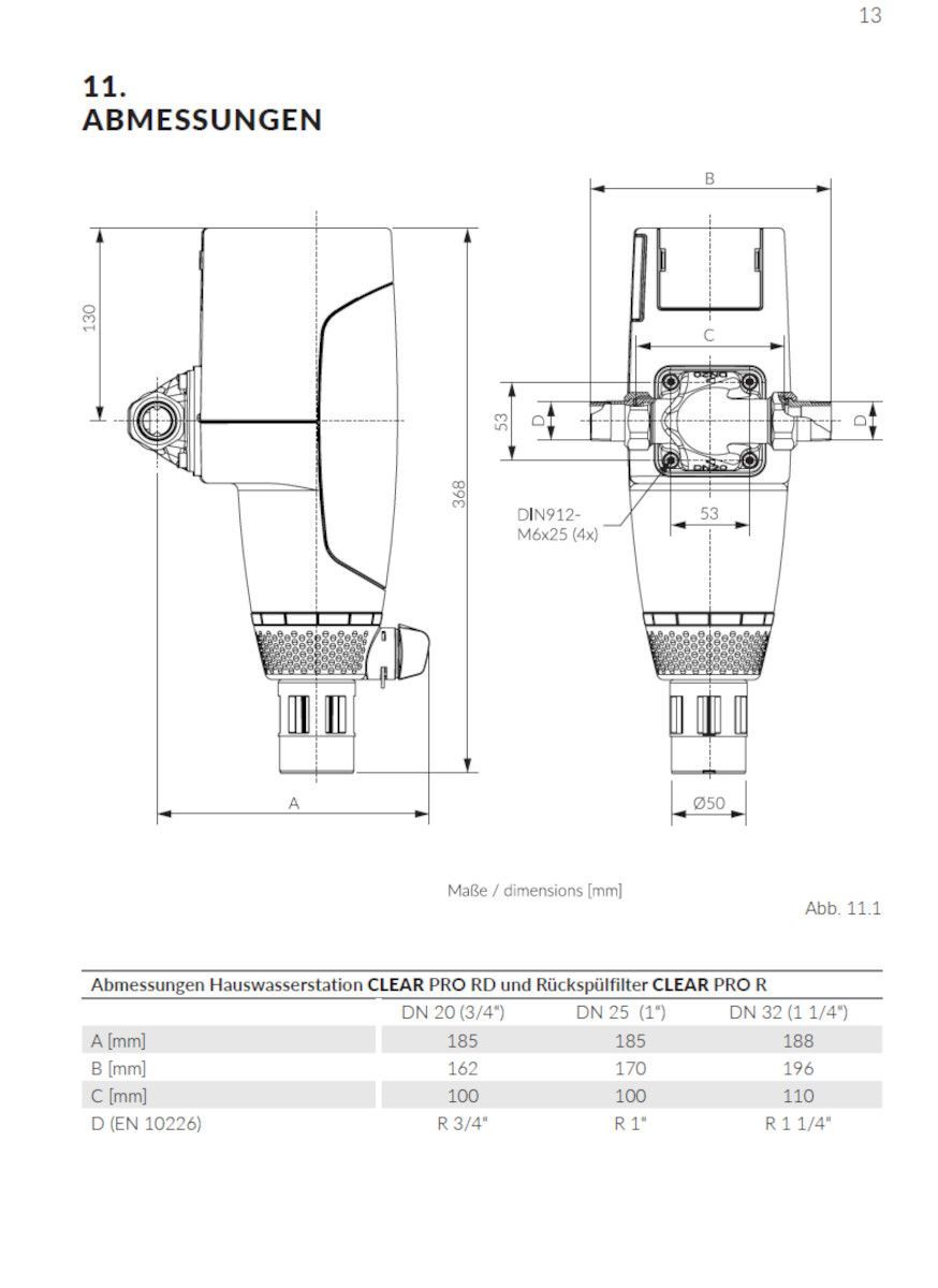 Conel Rückspülfilter CLEAR PRO R 1 mit Einbauflansch Rückspülfilter nach DIN 19628 und DIN-EN 13443 I. Mit Manometer, Einbauflansch und Verschraubungen DN 25. Mit Wartungsanzeige und Ablauftrichter nach DIN EN 1717. Durchflussleistung: 3,0 m3 h bei Dp 0,2 und 4,9 m3 h bei Dp 0,5 bar. Untere Durchlas