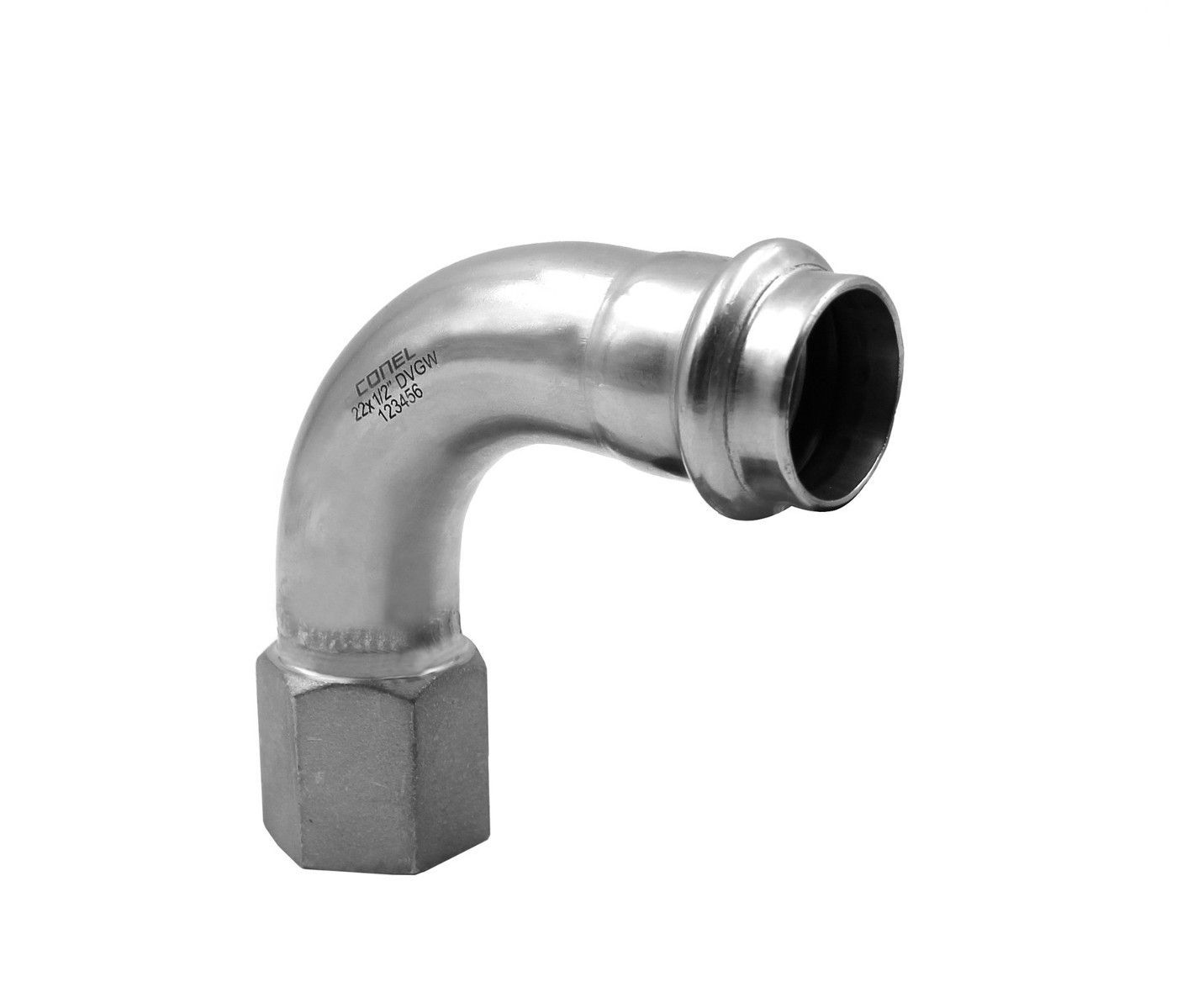 Connect Inox Bogen 18mm x 3 4 IG 90 Grad Edelstahl Pressfitting verpressbar mit M- und V- Kontur hochwertige Edelstahllegierung 1.4404 extrem hohe Korrosionsbeständigkeit DVGW geprüft