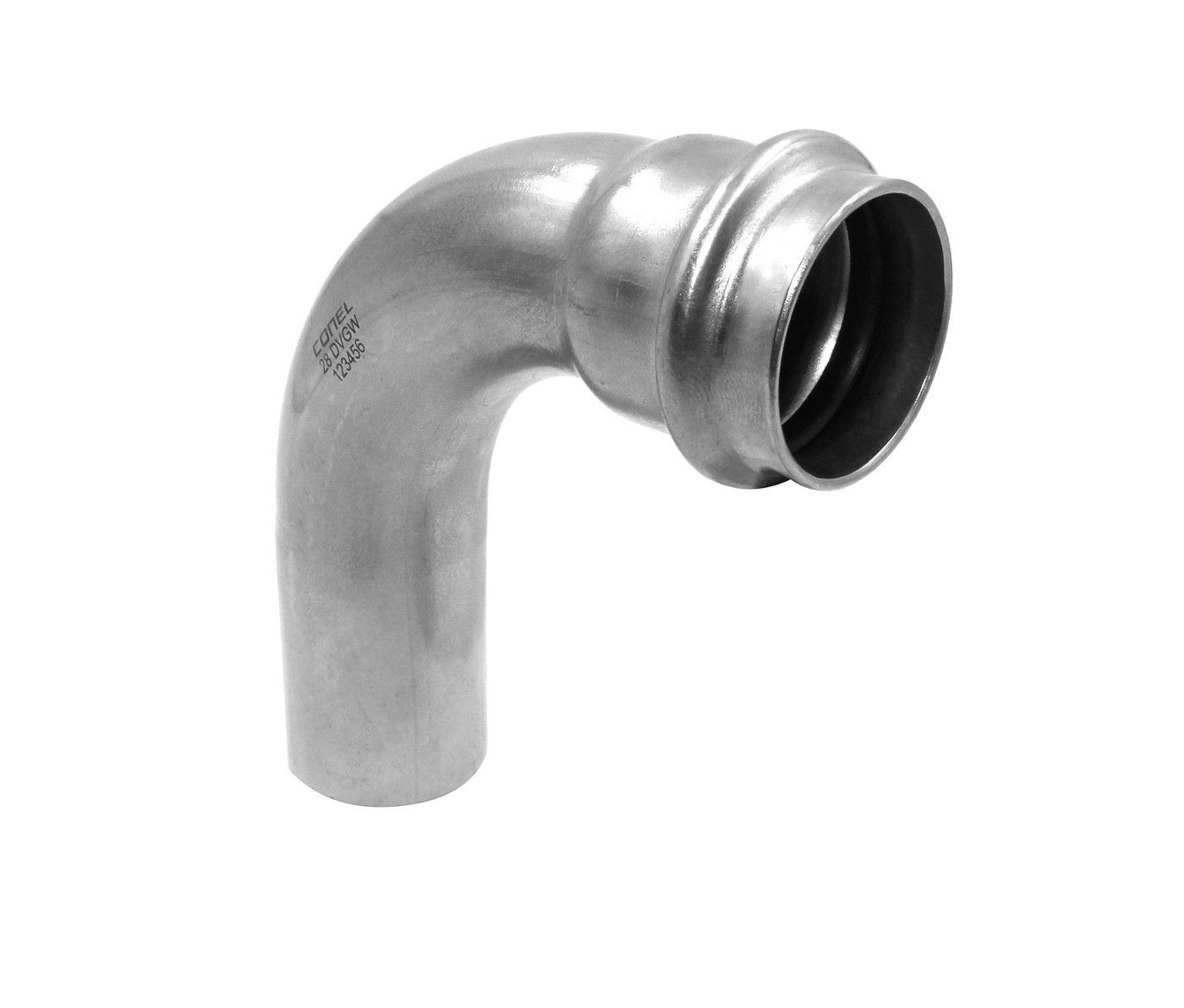 Connect Inox Bogen I A 22mm 90 Grad kurze Ausführung mit einseitiger Einschublänge Edelstahl Pressfitting verpressbar mit M- und V- Kontur hochwertige Edelstahllegierung 1.4404 extrem hohe Korrosionsbeständigkeit DVGW geprüft