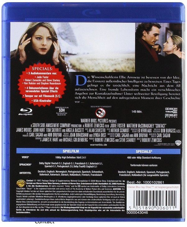 Contact Jodie Foster Matthew McConaughey James Woods DVD/ NEU/ OVP