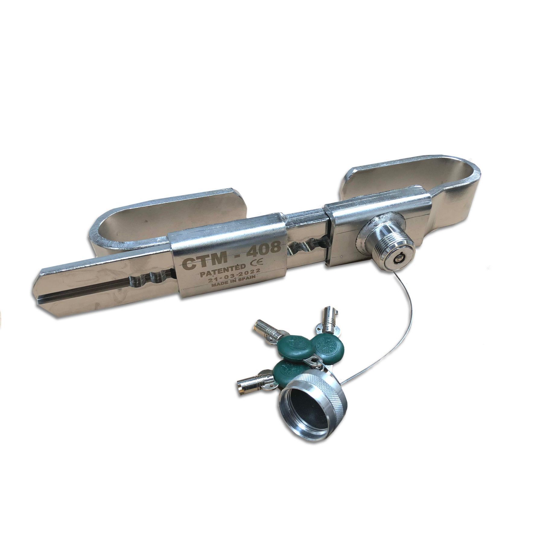 1 x Container-Schloss CTM - 408 Schloss ist aus rostfreiem Stahl Einstellbar von 265 mm bis 435 mm Abnehmbar und sehr leicht Schlöss Inklusive 3 Schlüsseln Anwendungsbereich: Containern