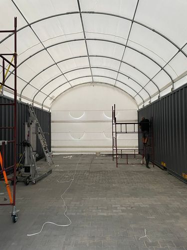 Containerdach 6x12m mit PVC-Rückwand 750g/m2