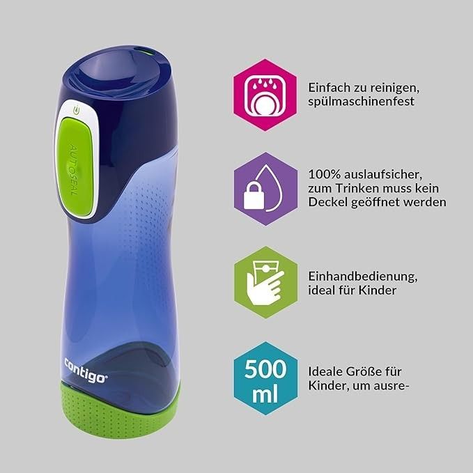 Contigo Swish Autoseal Trinkflasche - BPA-frei, 100% auslaufsicher, 500ml, für Kinder