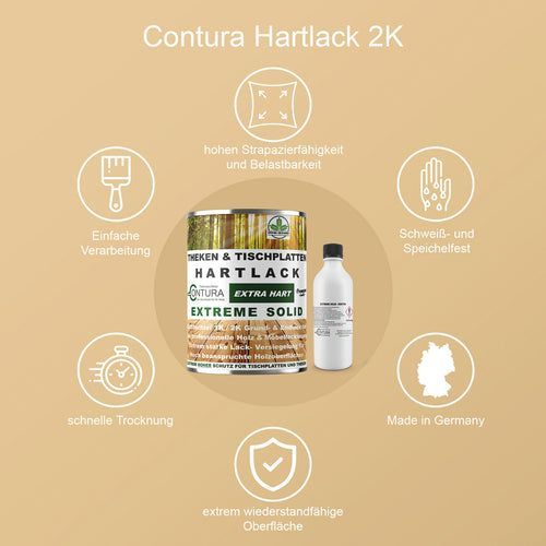 Contura 2K- Hartlack Thekenlack -Seidenmatt- Tischplattenlack Klarlack Set