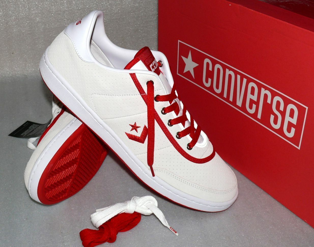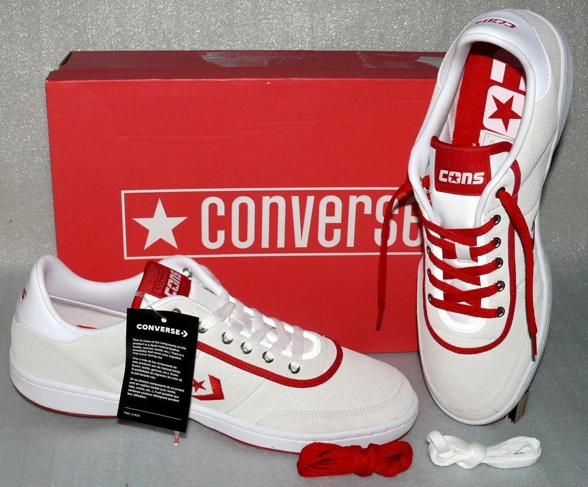 Converse 164136C Barcelona PRO OX Rau UP Leder Schuhe Sneaker 44 46,5 Natur Red