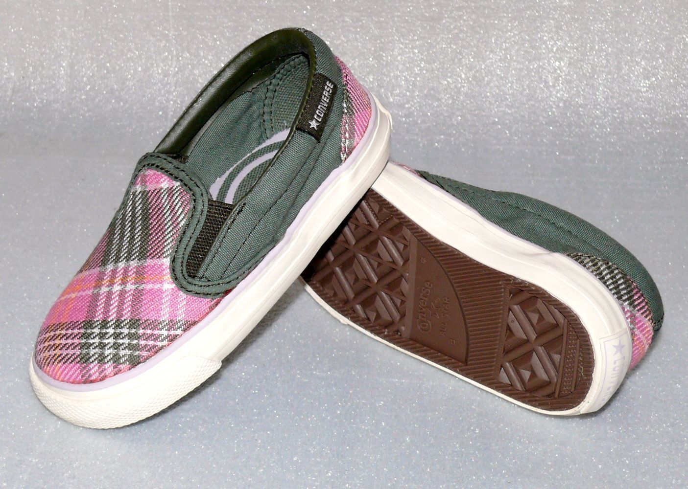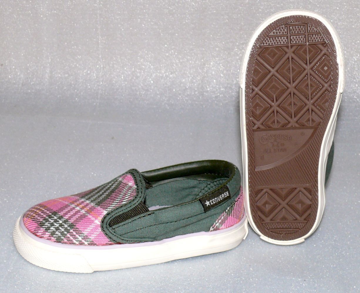 Converse Converse Skid Grip EV Canvas Kinder Schuhe Slip On Sneaker Gr 18 UK2 Plaid Pink