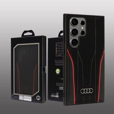 • Handyhülle Galaxy S24 Ultra Audi Echtleder MagSafe schwarz rot Logo