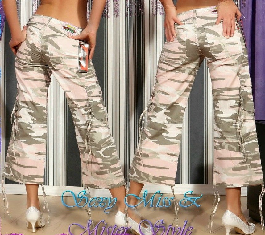 Camouflage Tarn Army Style Hose Hüft Bund anliegend dann lässige Form Taschen Tunnelzug Bändel versehen Eye Catcher Hot & Sexy In-Style Look _____________________________ Im Artikel steht Französische Größe Maße in ungedehnten Zustand fällt am Bund klein aus!! locker liegend einfache Weite in cm