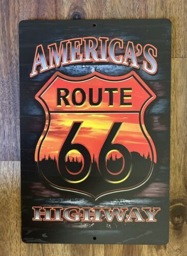 Cooles Alu Dibond Schild: Americas Highway - Route 66 Sunset Abmessung 20 x 30 cm abgerundete Ecken mit vorgebohrten Löchern