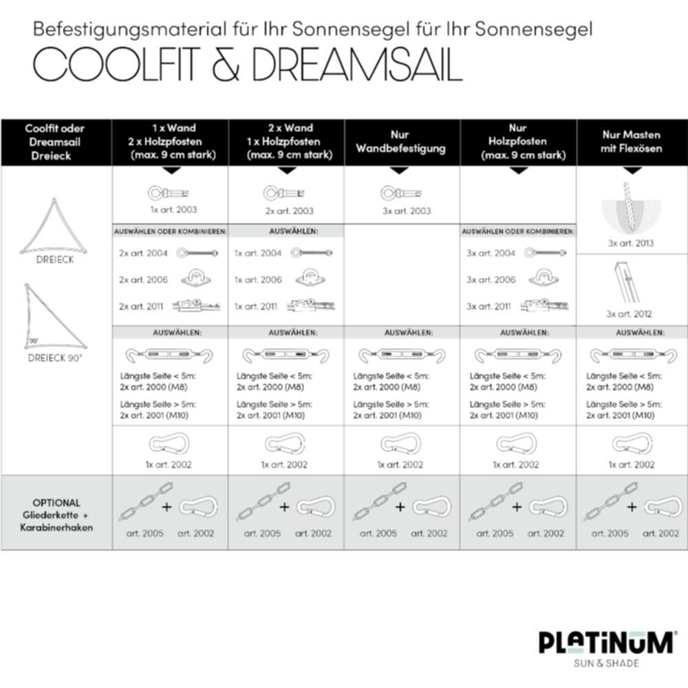• Coolfit Sonnensegel 3-Eck, altweiß 90° Bezug aus 285g/m² Polyethylen (HDPE), 500x500