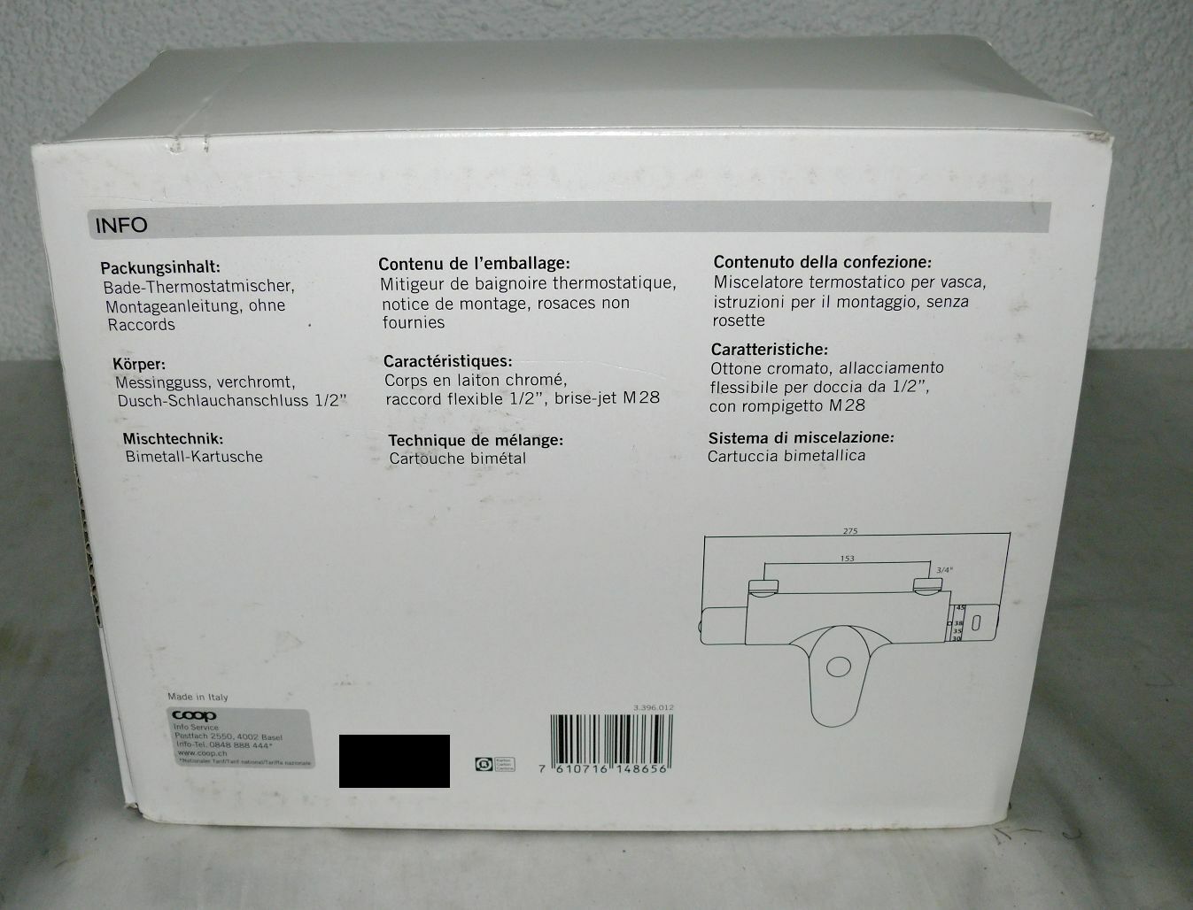 Coop Badewannen Thermostat Wannenarmatur Thermostatarmatur Verbrühschutz 153mm