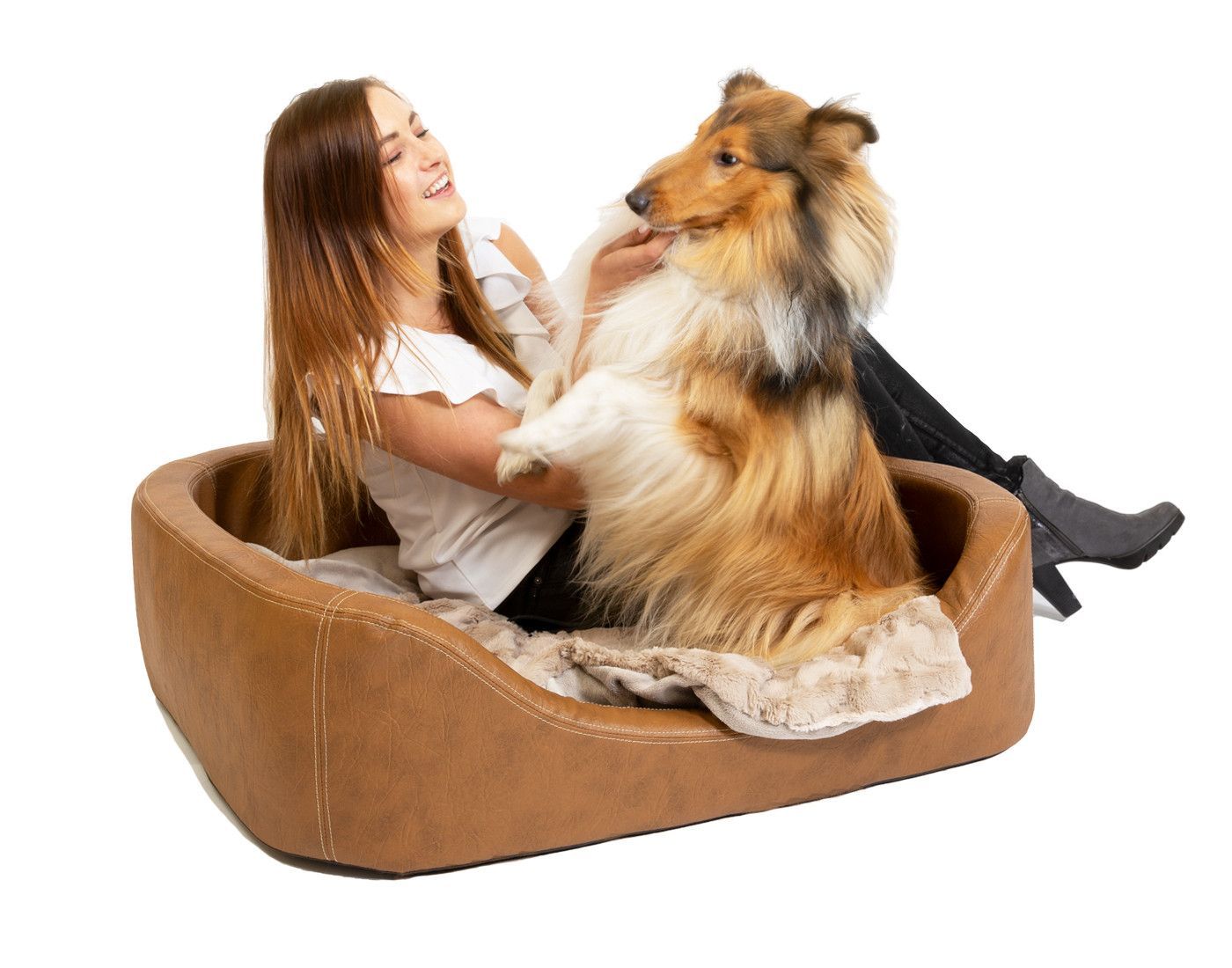 CopcoPet - Hundebett Stella Kunstleder Orthopädisch Hundesofa Hundekorb Schlafplatz