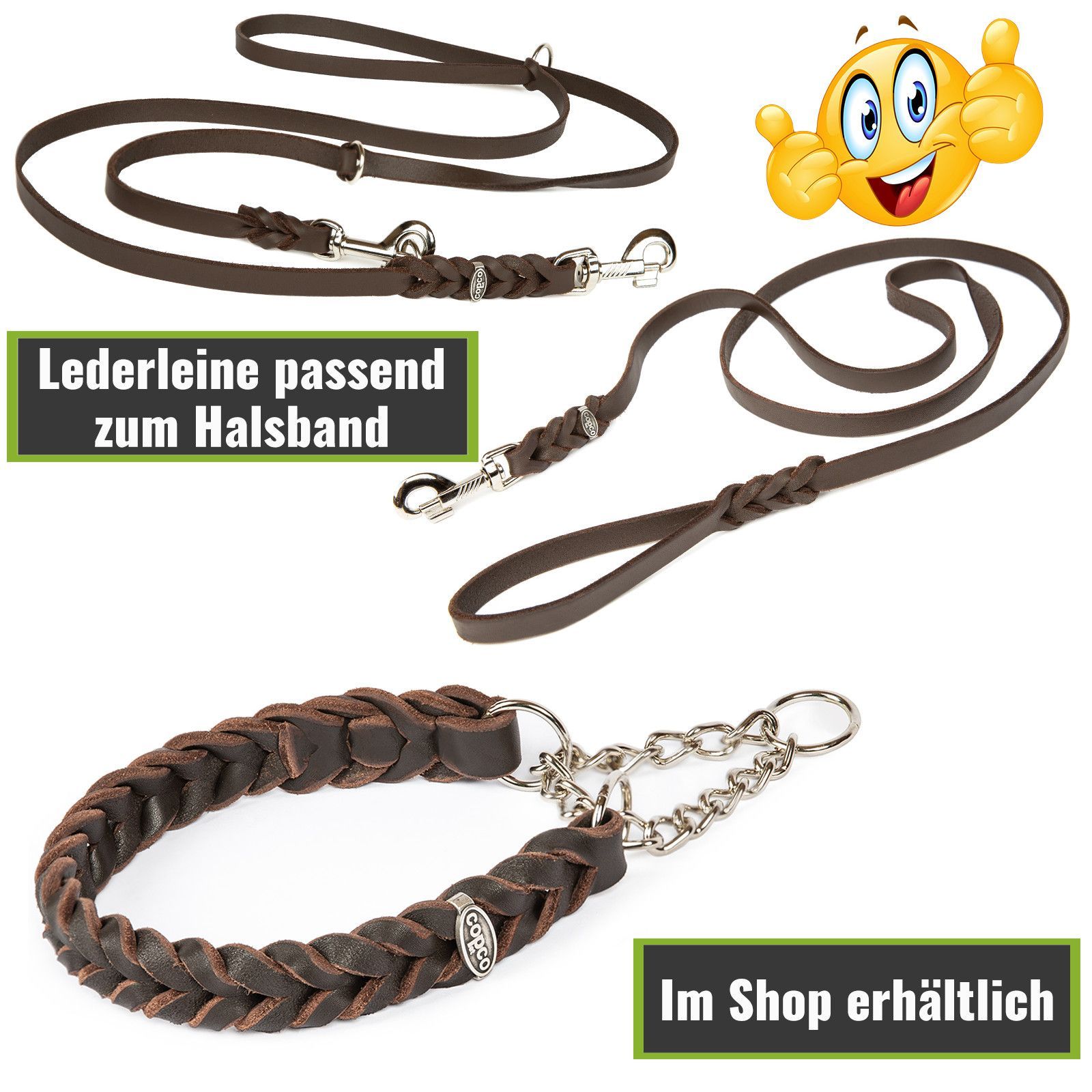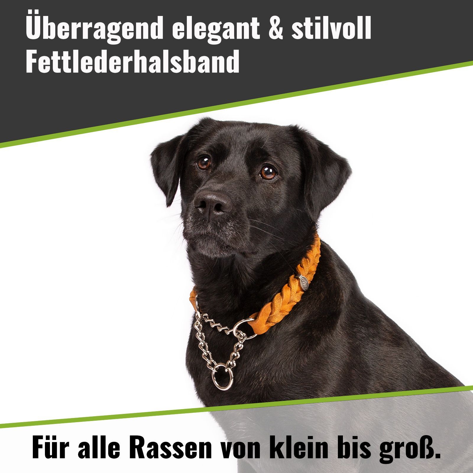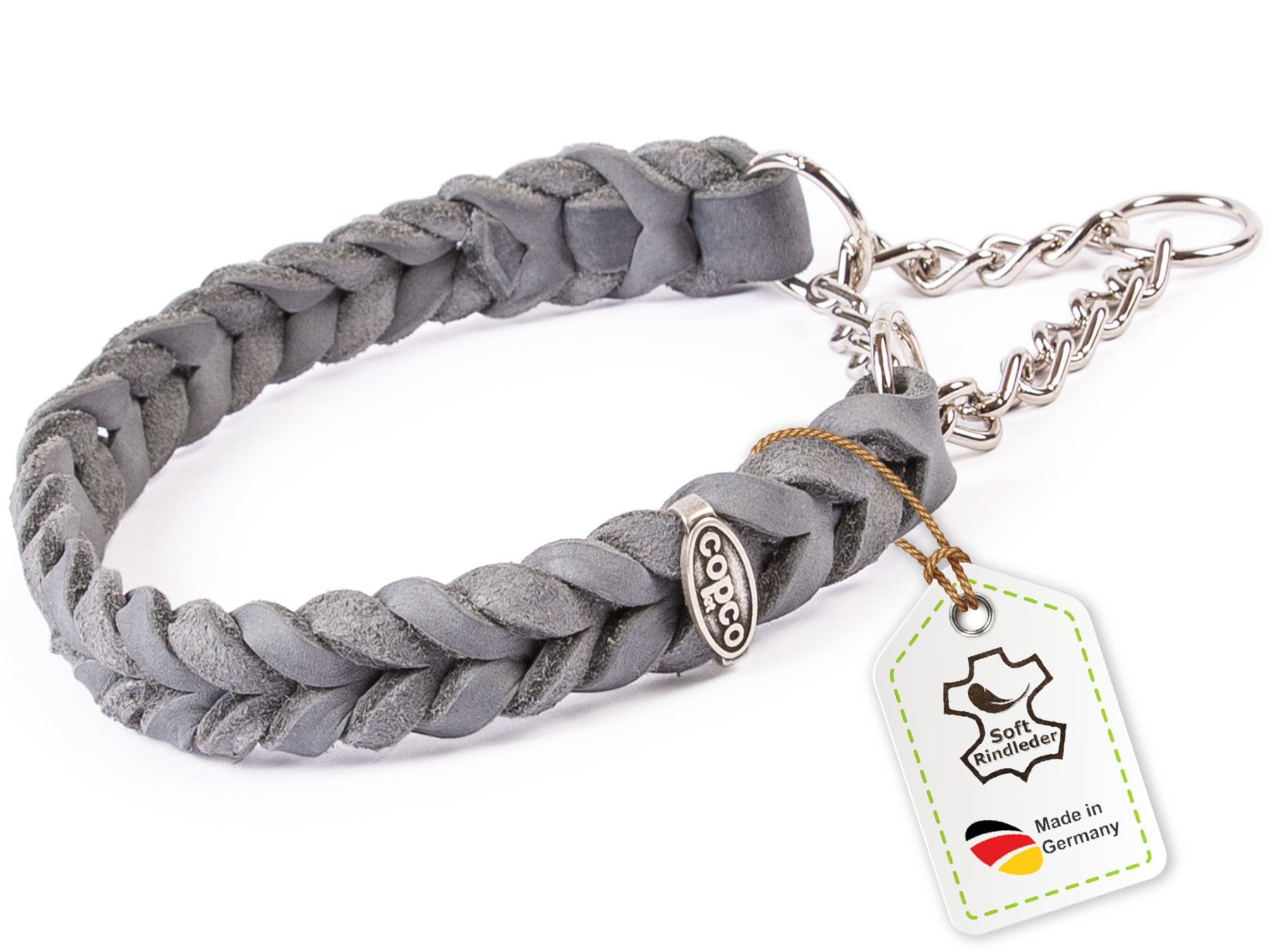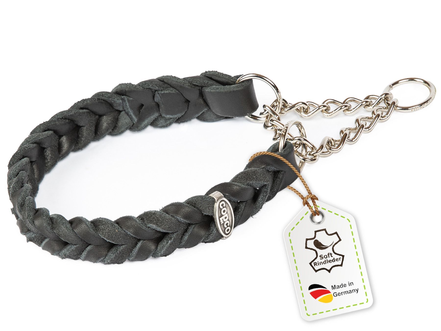 CopcoPet - Hundehalsband Fettlederhalsband geflochten mit verchromte Zugstopp-Kette