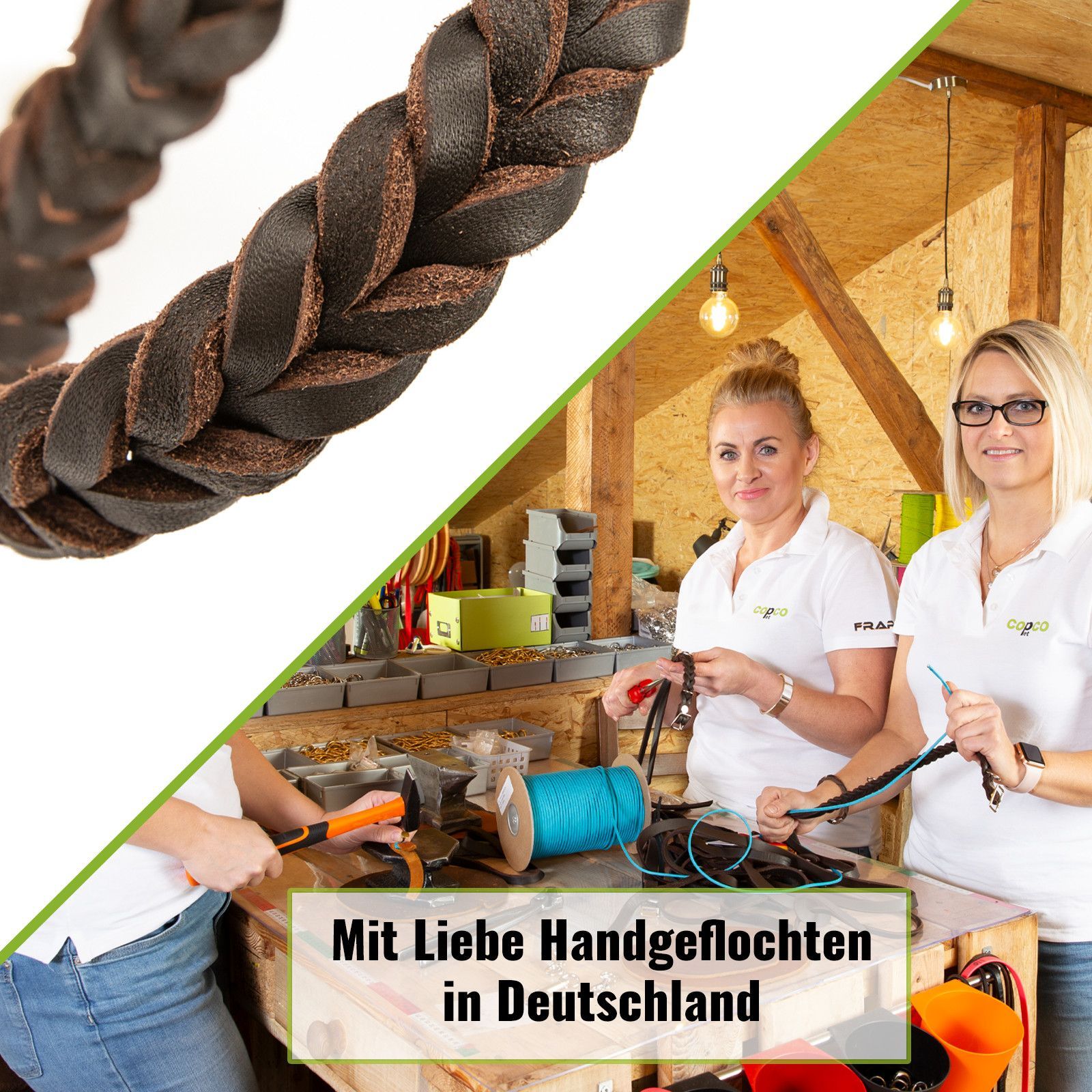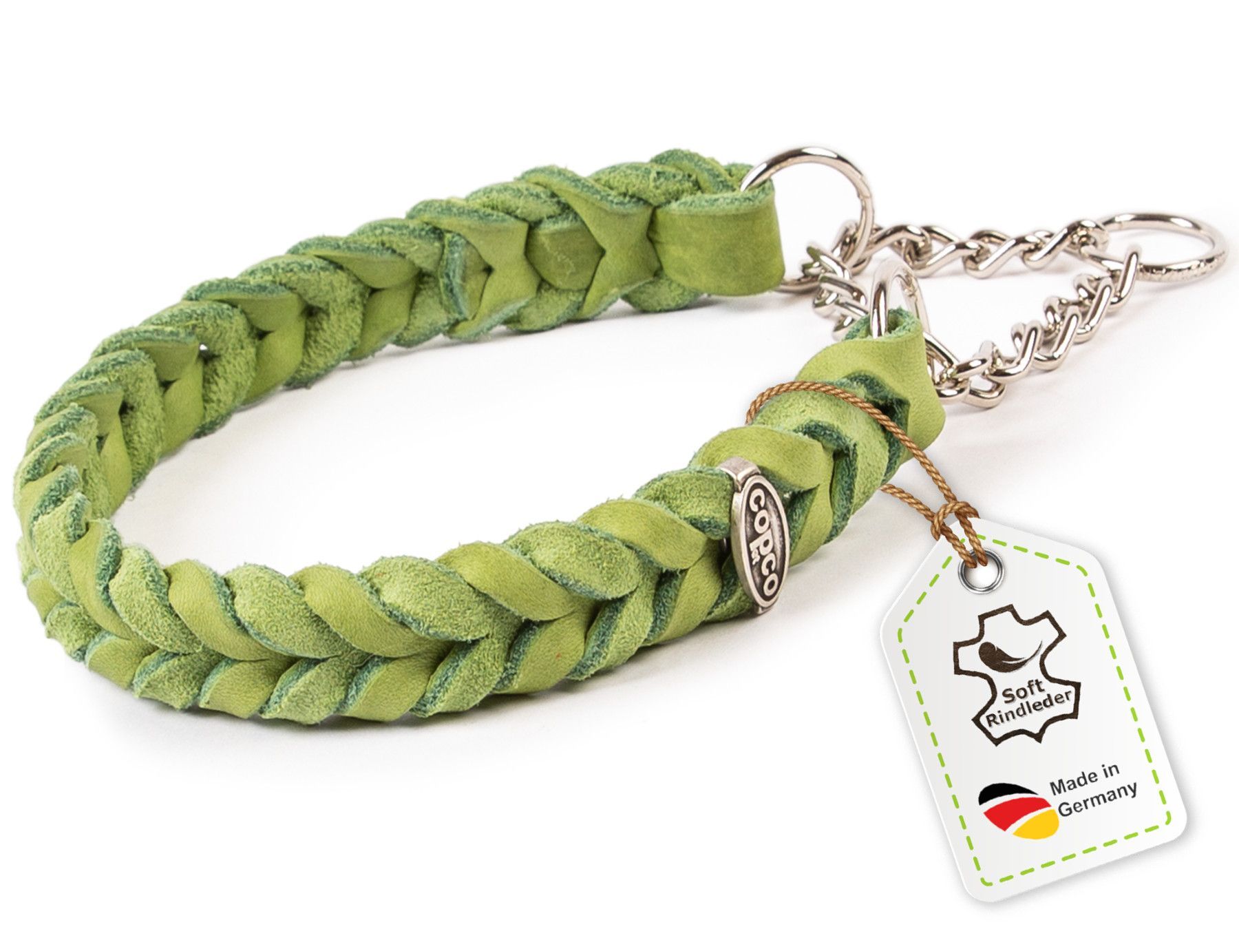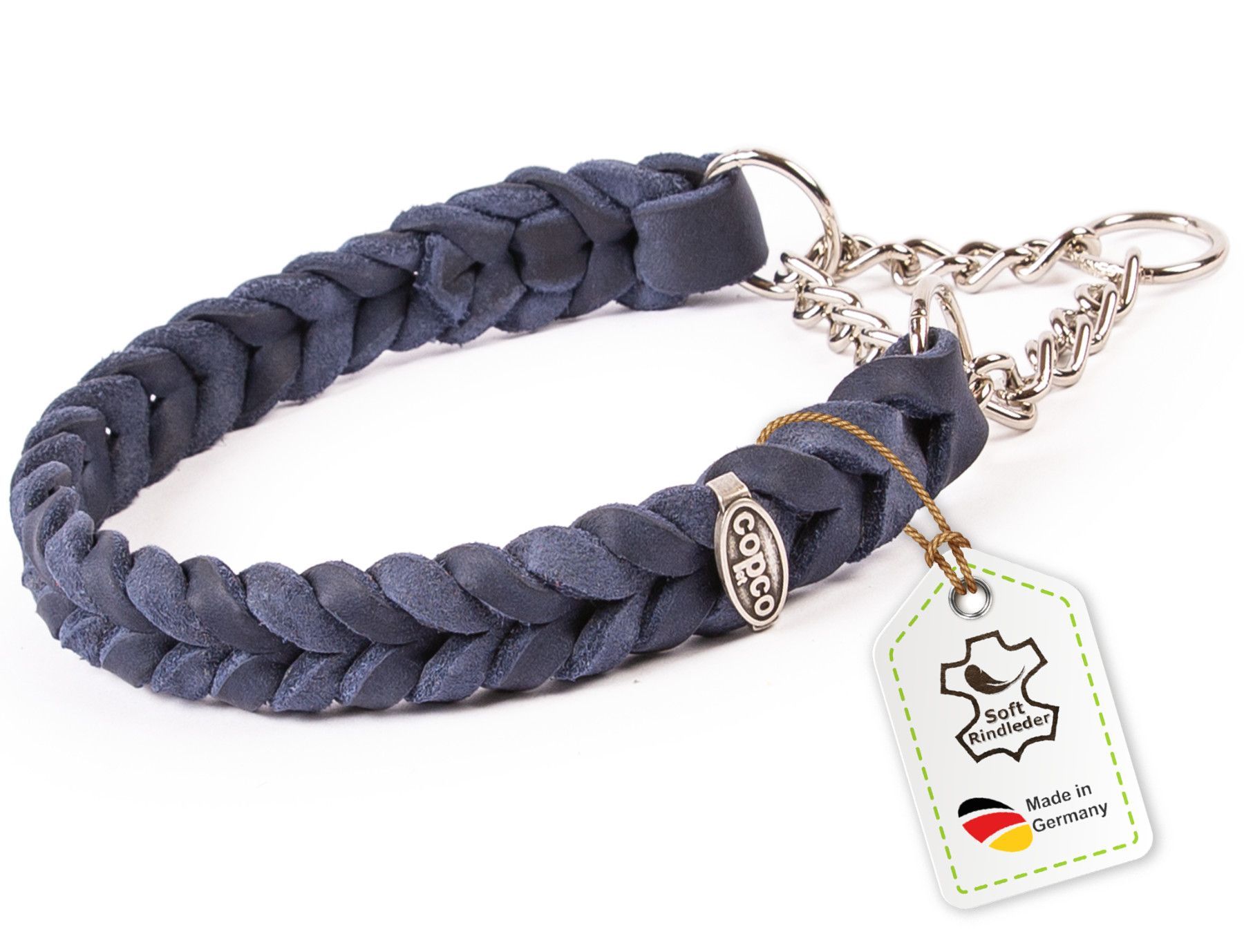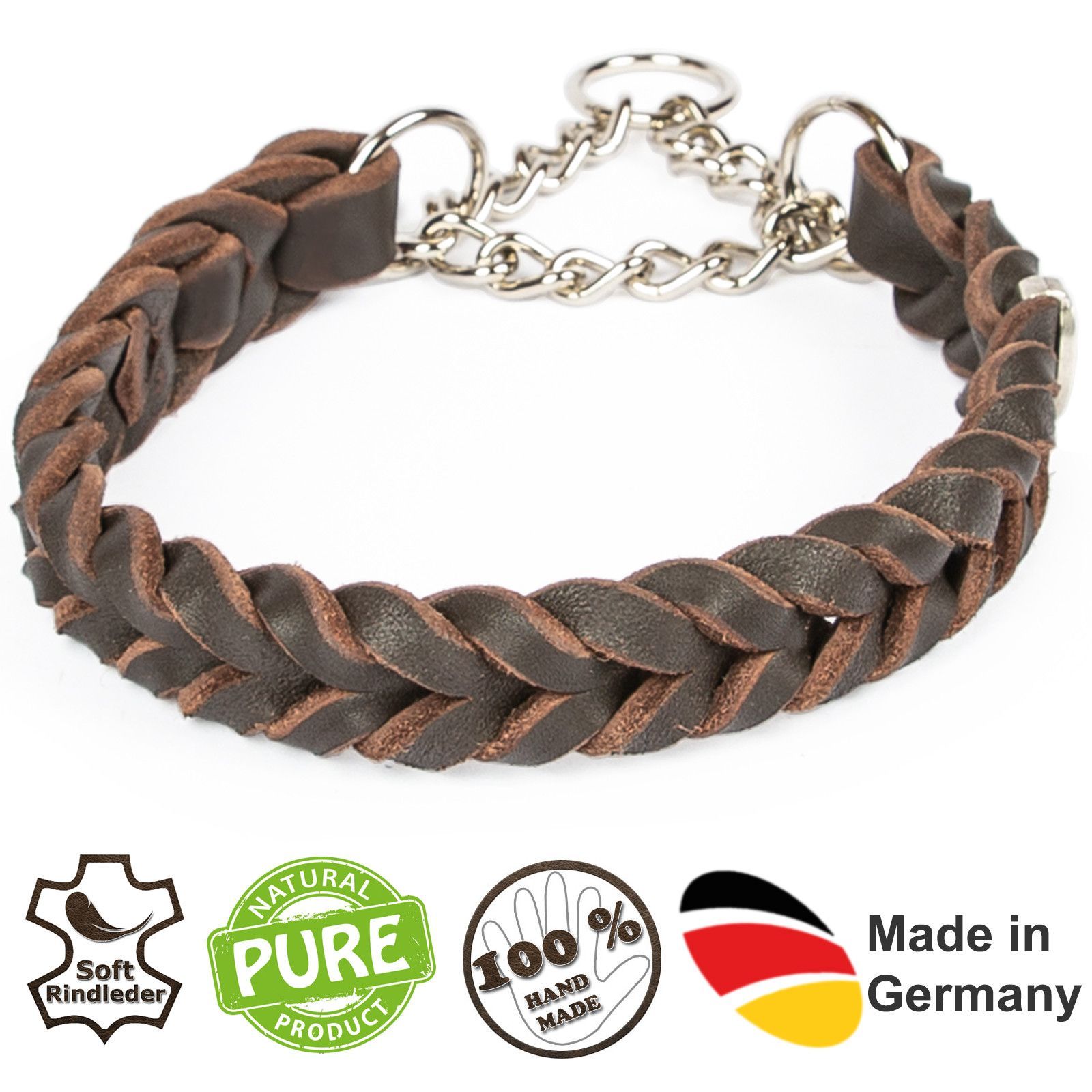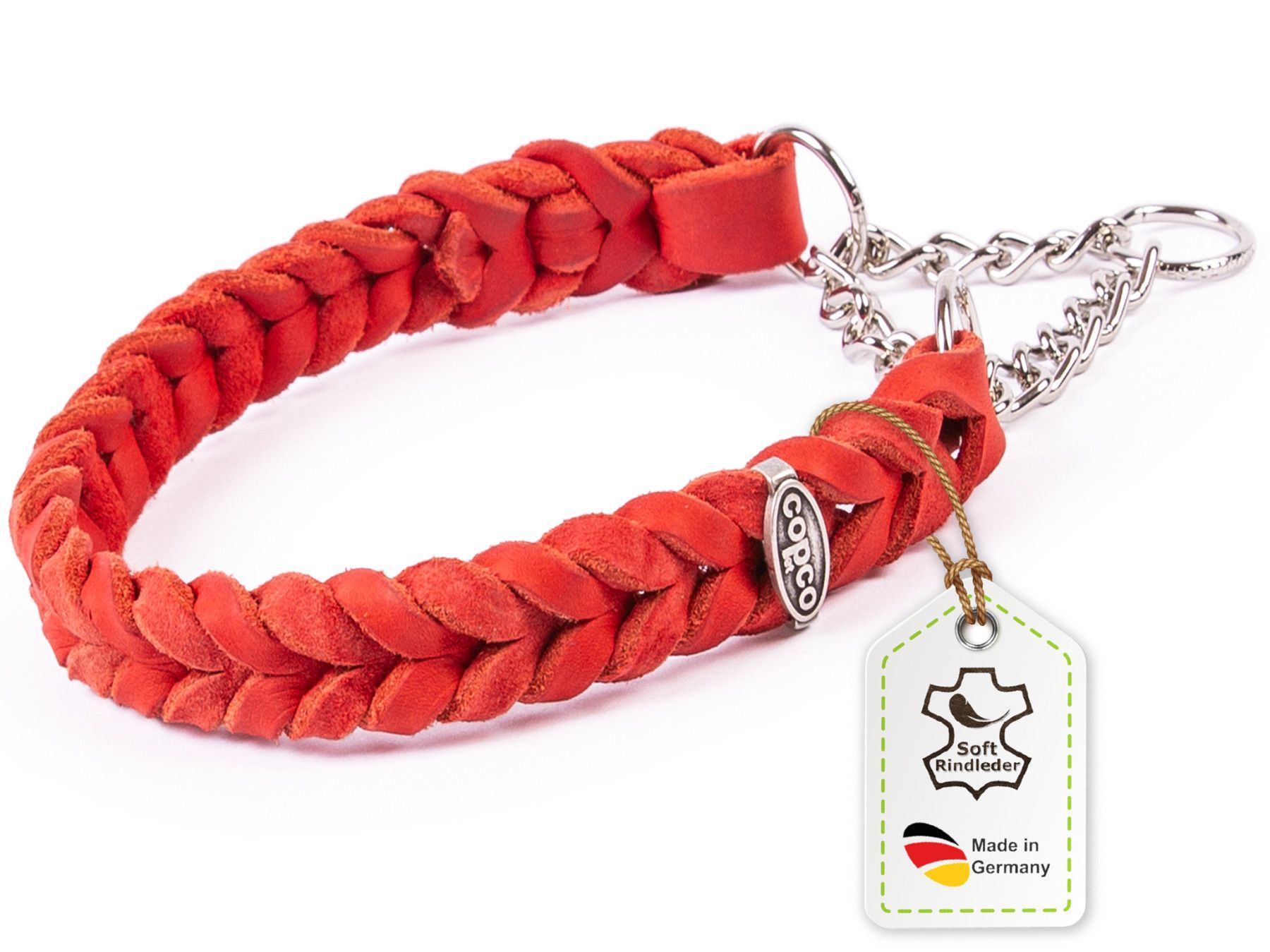 CopcoPet - Hundehalsband Fettlederhalsband geflochten mit verchromte Zugstopp-Kette