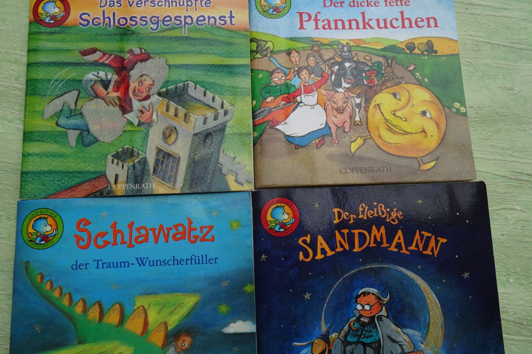 Bilderbücher - Kinderbücher ... Erinnerungen ..... Der fleißge Sandmann Coppenrath 2001 Achim Bröger, Sven Leberer mit Glimmer Cover geknickt, sonst gut Schlawatz, der Traum-Wunscherfüller Coppenrath 2001 Isabel Abedi , Heike Treiber mit Glimmer Zustand gut+ Das verschnupfte Schlossgespenst Coppenra... Mehr