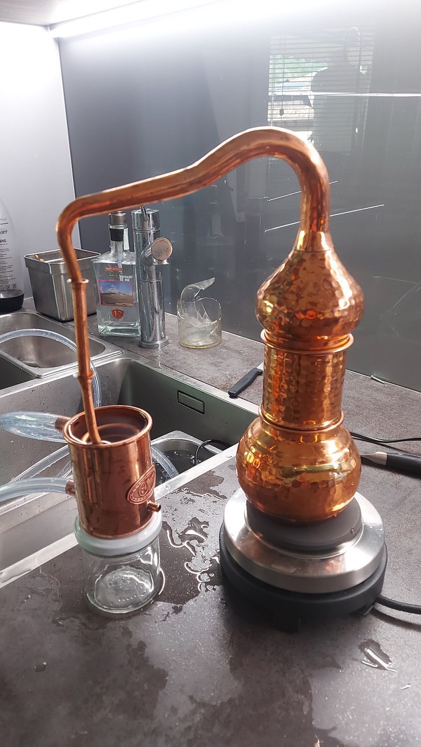 Gefahrenhinweis: Bei sachgemäßer Benutzung birgt diese Kräuterdestille keine besonderen Gefahren. Sie sollten trotzdem wissen, Kupfer bietet eine extrem gute Wärmeleitfähigkeit. Die Destille wird heiß bei der Benutzung. Bitte seien Sie vorsichtig und beachten Sie die beiliegende Gebrauchsanleitung.