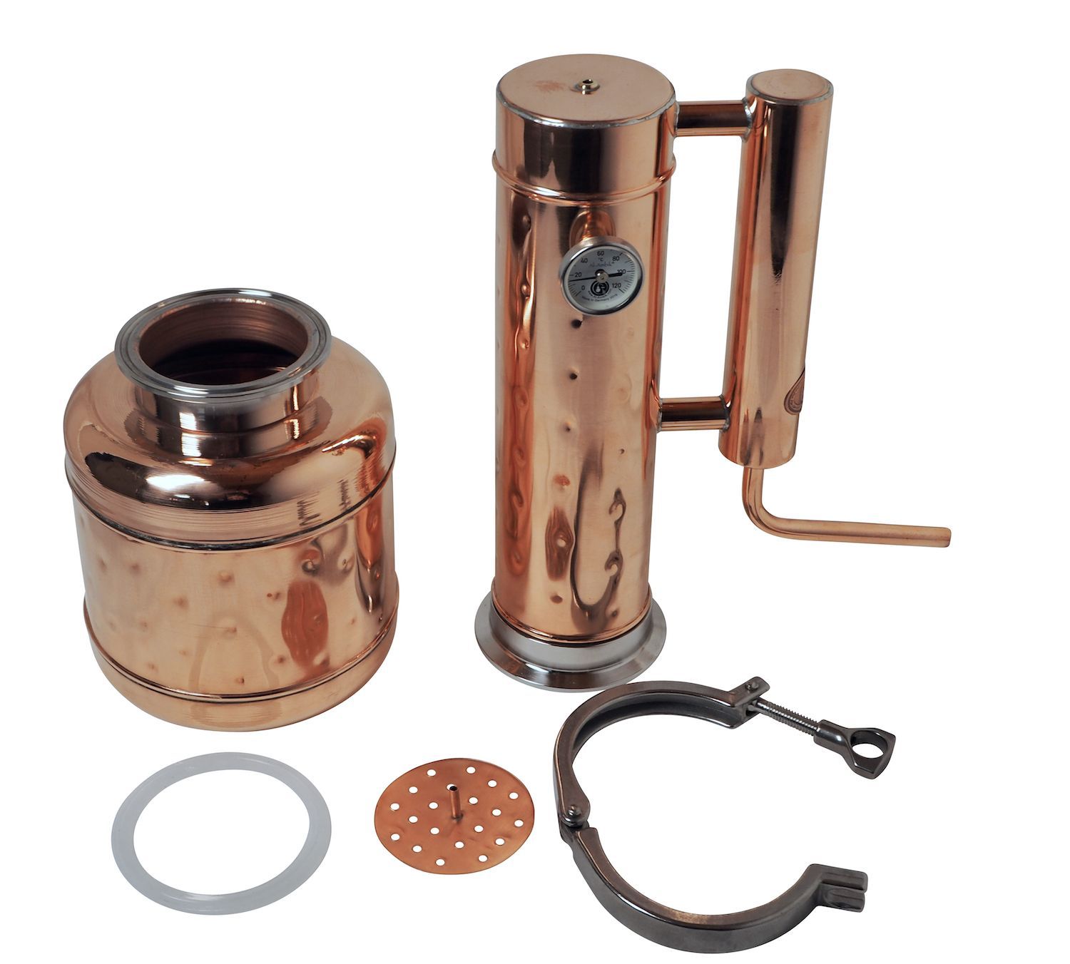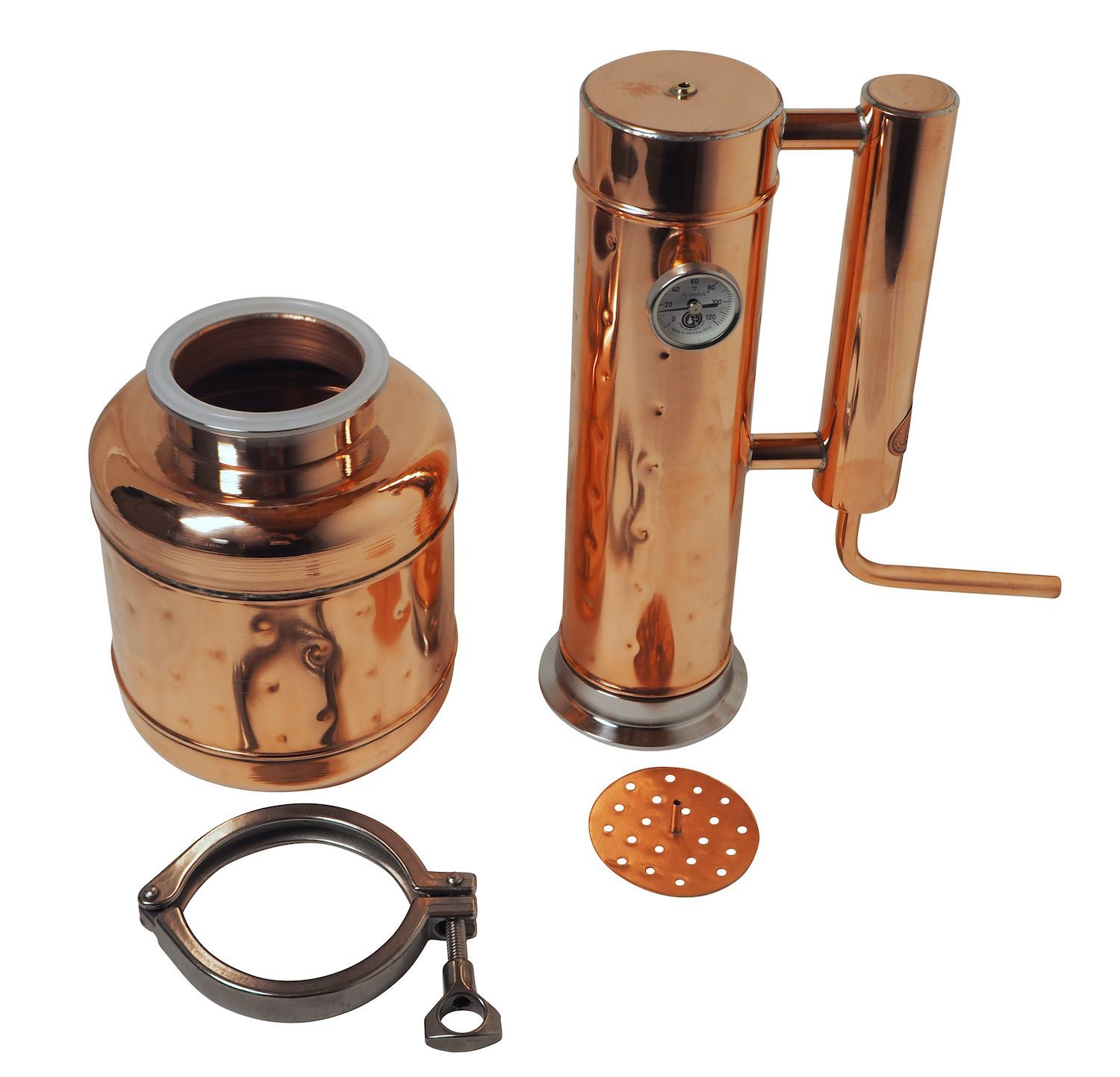 Gefahrenhinweis: Bei sachgemäßer Benutzung birgt diese Destille keine besonderen Gefahren. Sie sollten trotzdem wissen, Kupfer bietet eine extrem gute Wärmeleitfähigkeit. Die Destille wird heiß bei der Benutzung. Bitte seien Sie vorsichtig und beachten Sie die beiliegende Gebrauchsanleitung.